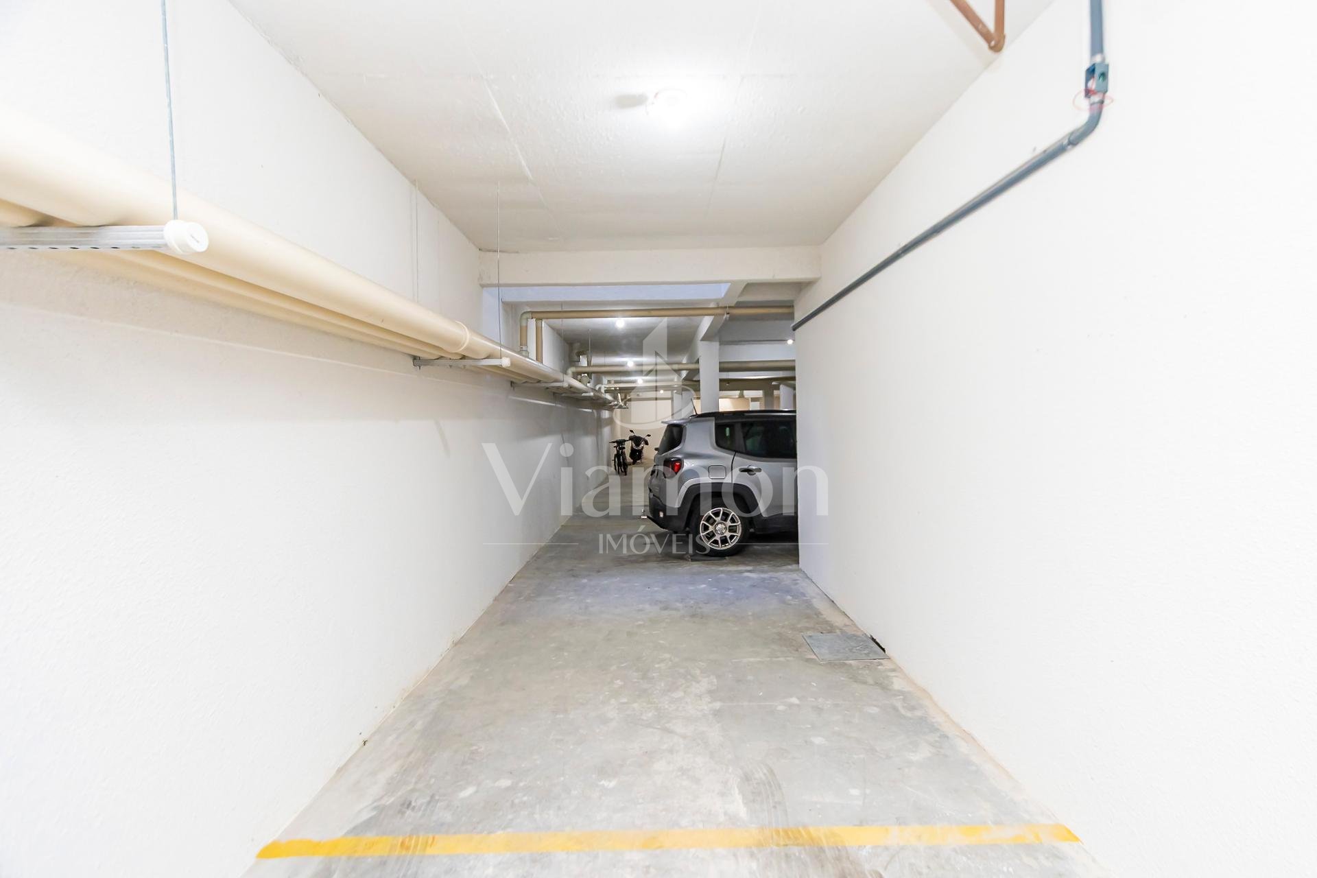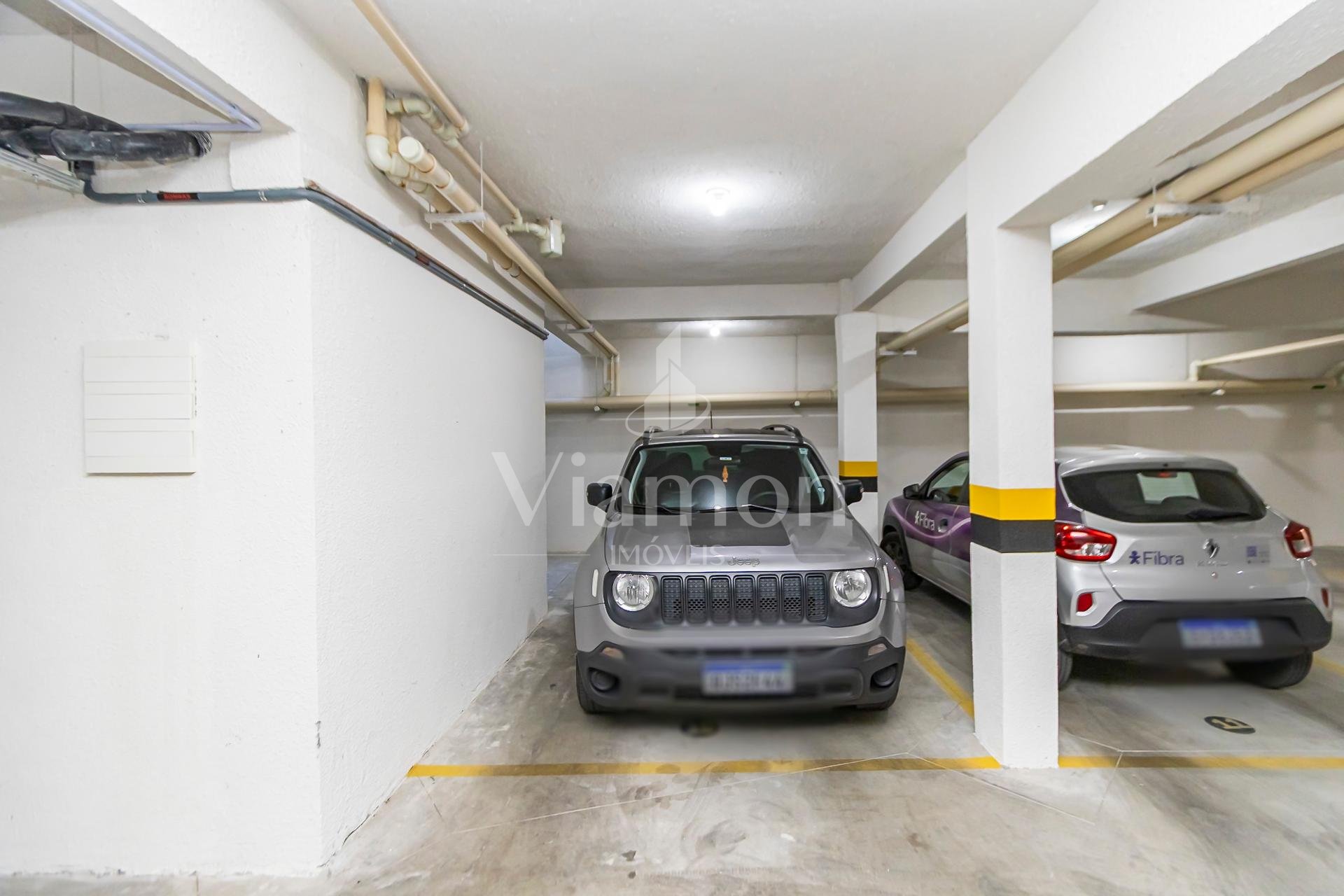 Garagem coberta para dois veículos, garantindo praticidade e segurança;