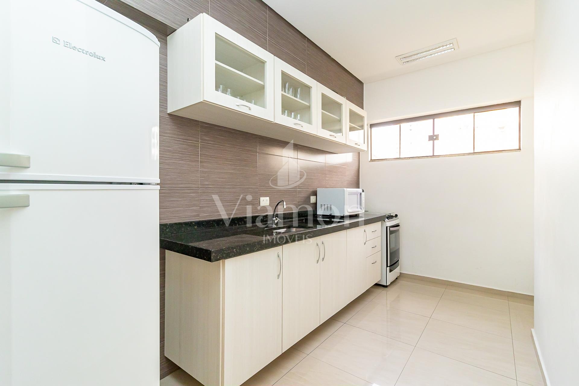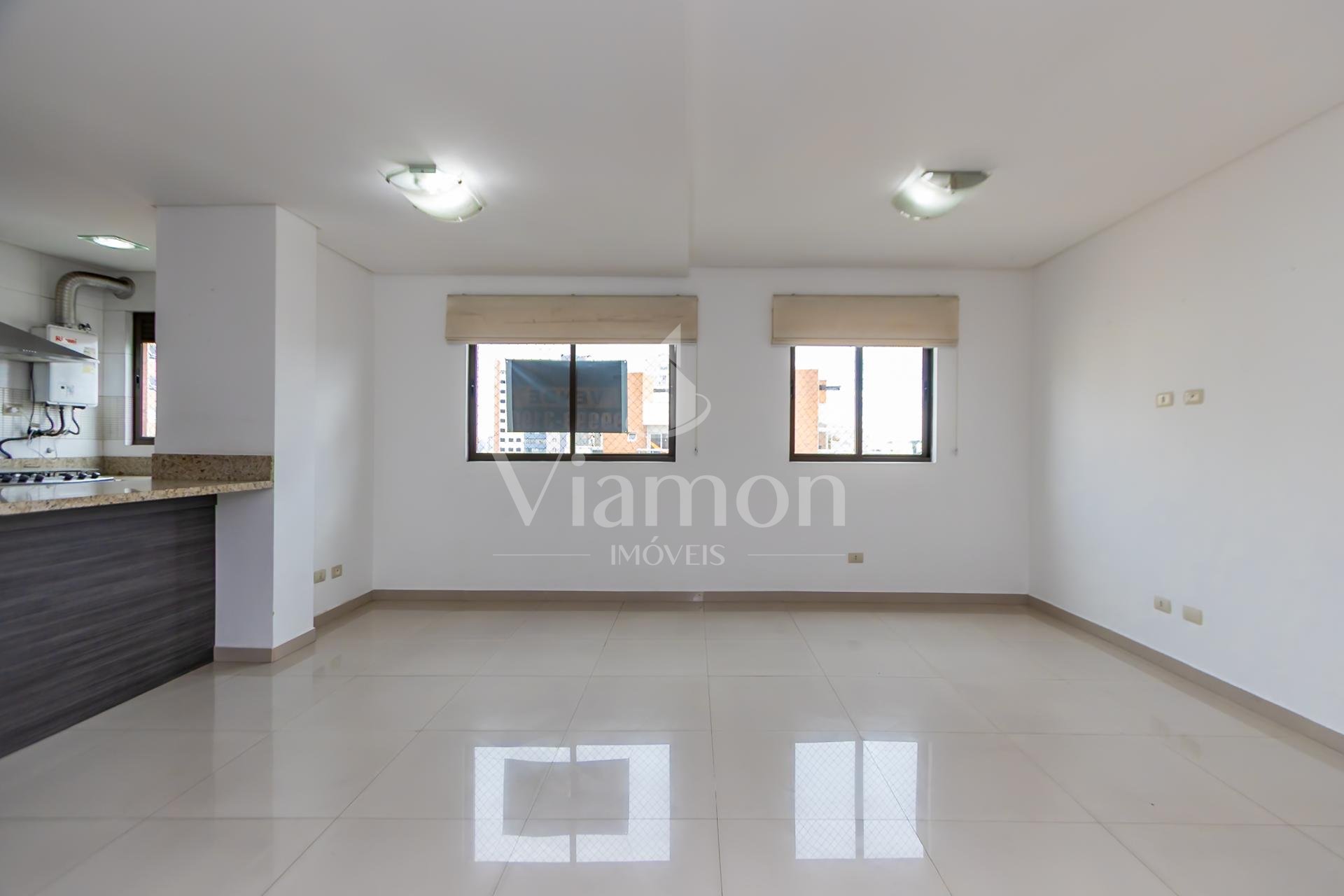 Sala integrada com cozinha, super ensolarado.