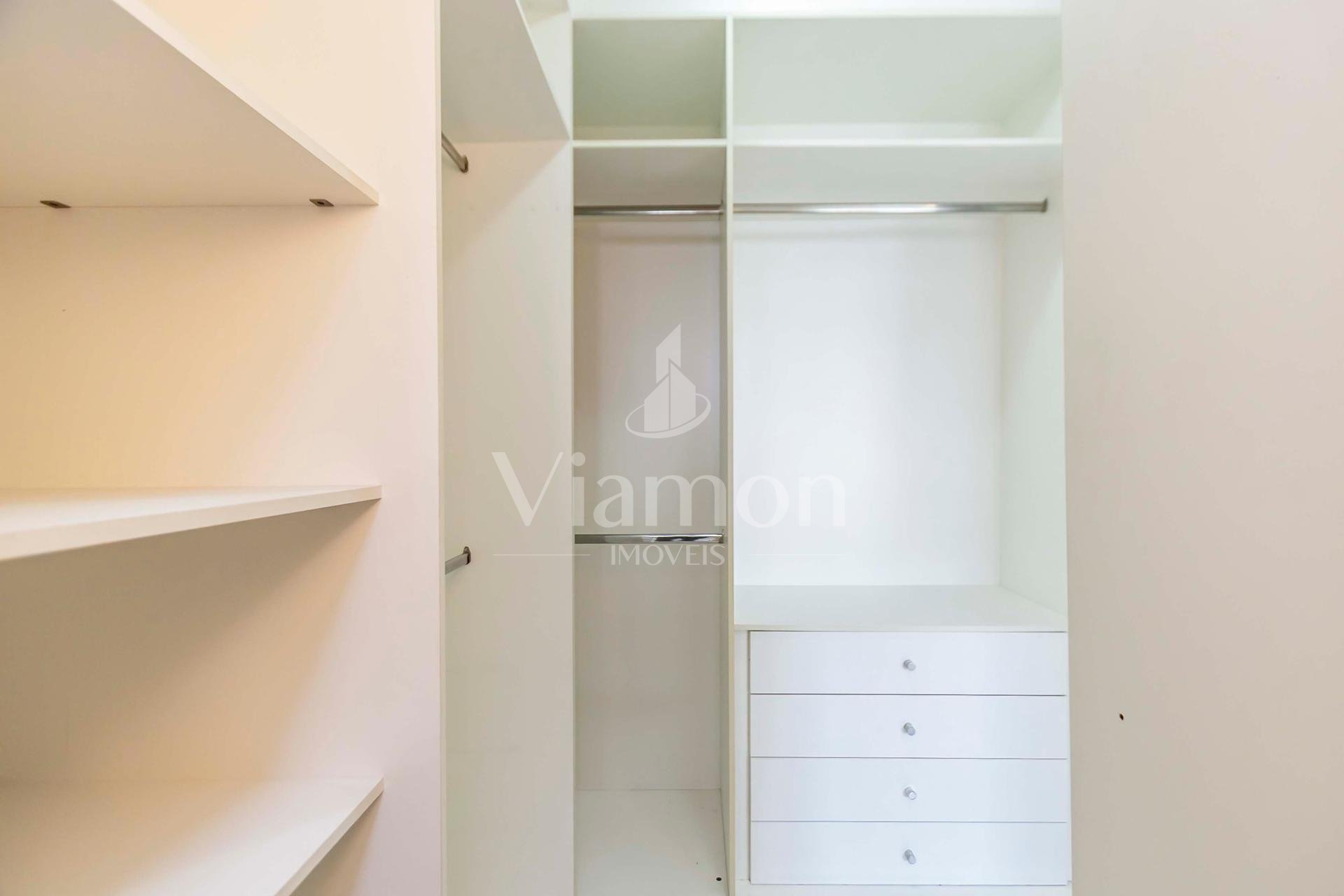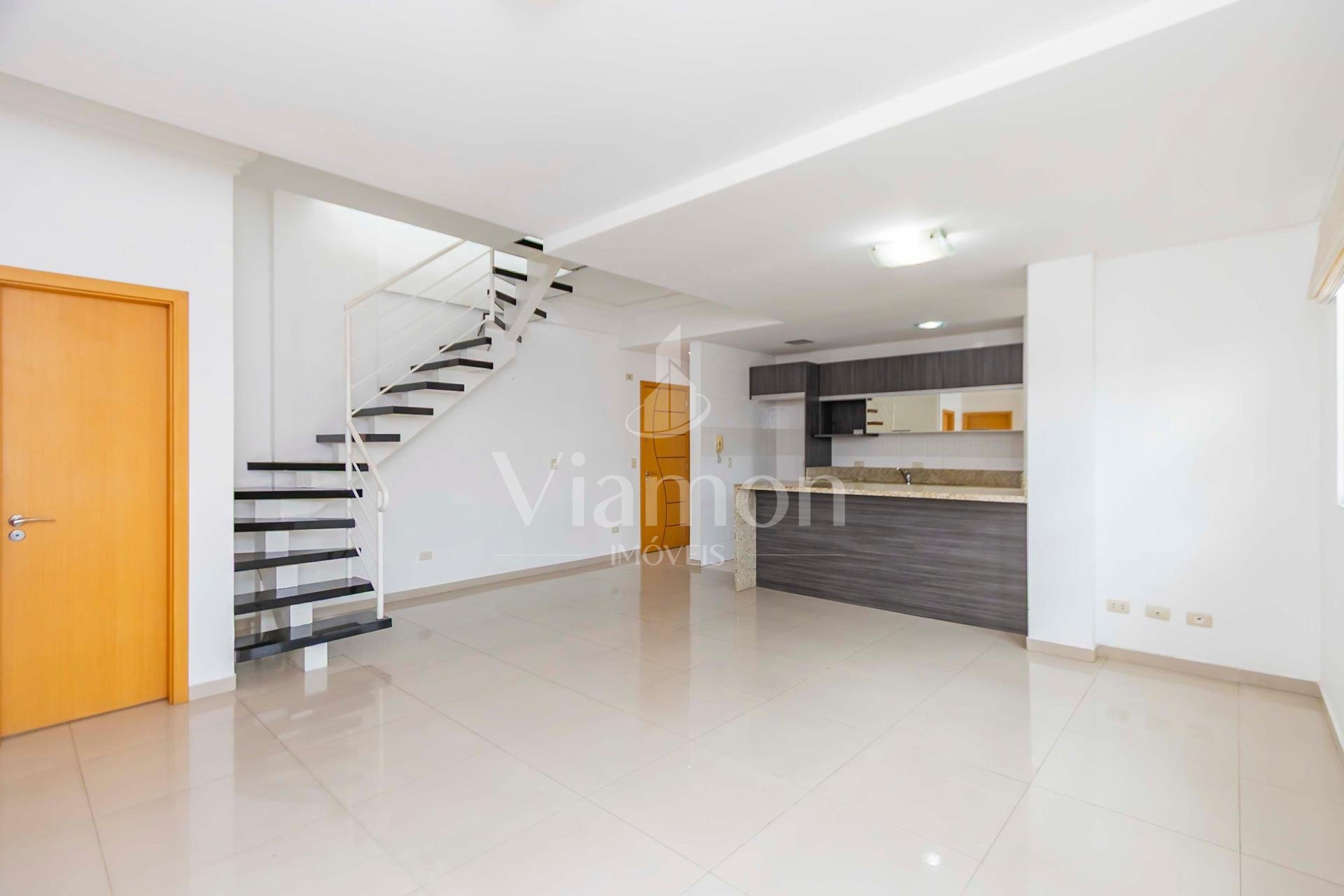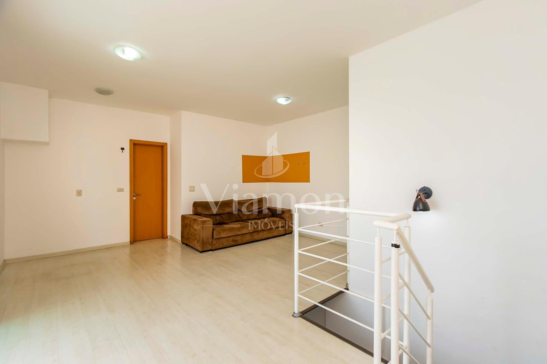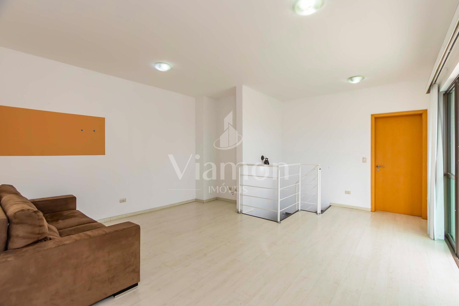 Duplex om 2 dormitórios, sendo a suíte (com amplo closet) no pavimento inferior, e o segundo quarto (que pode ser um Office) no pavimento superior.