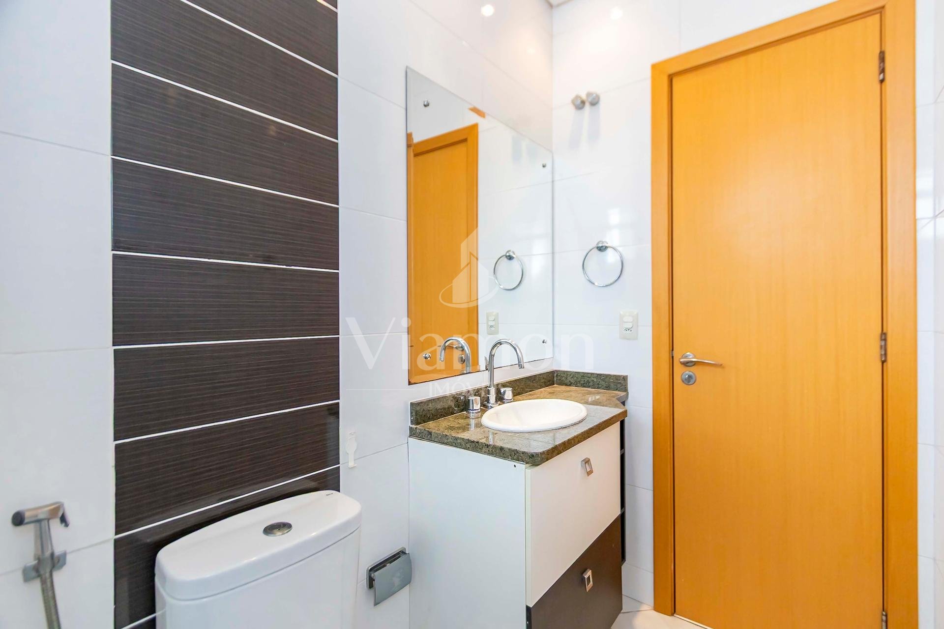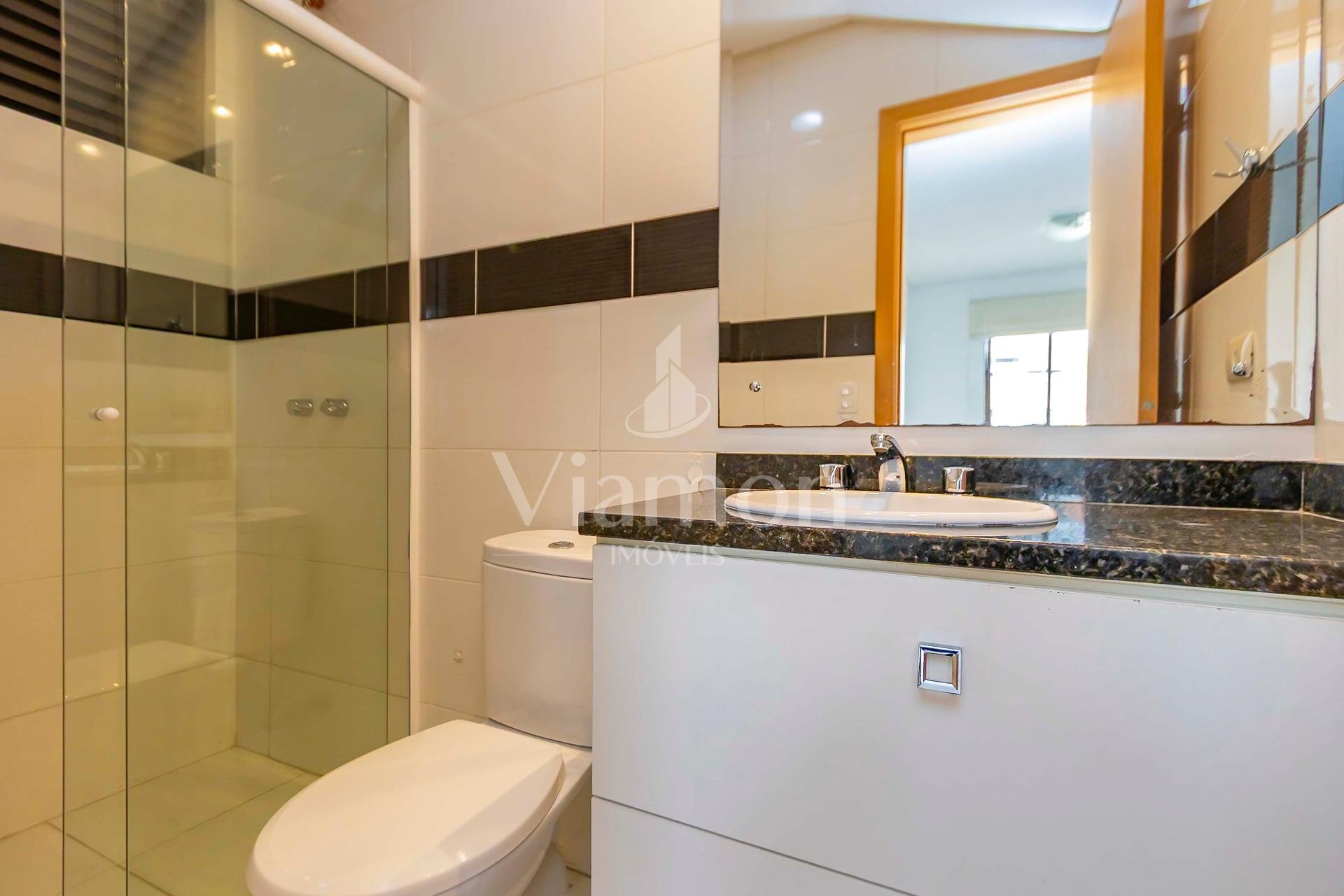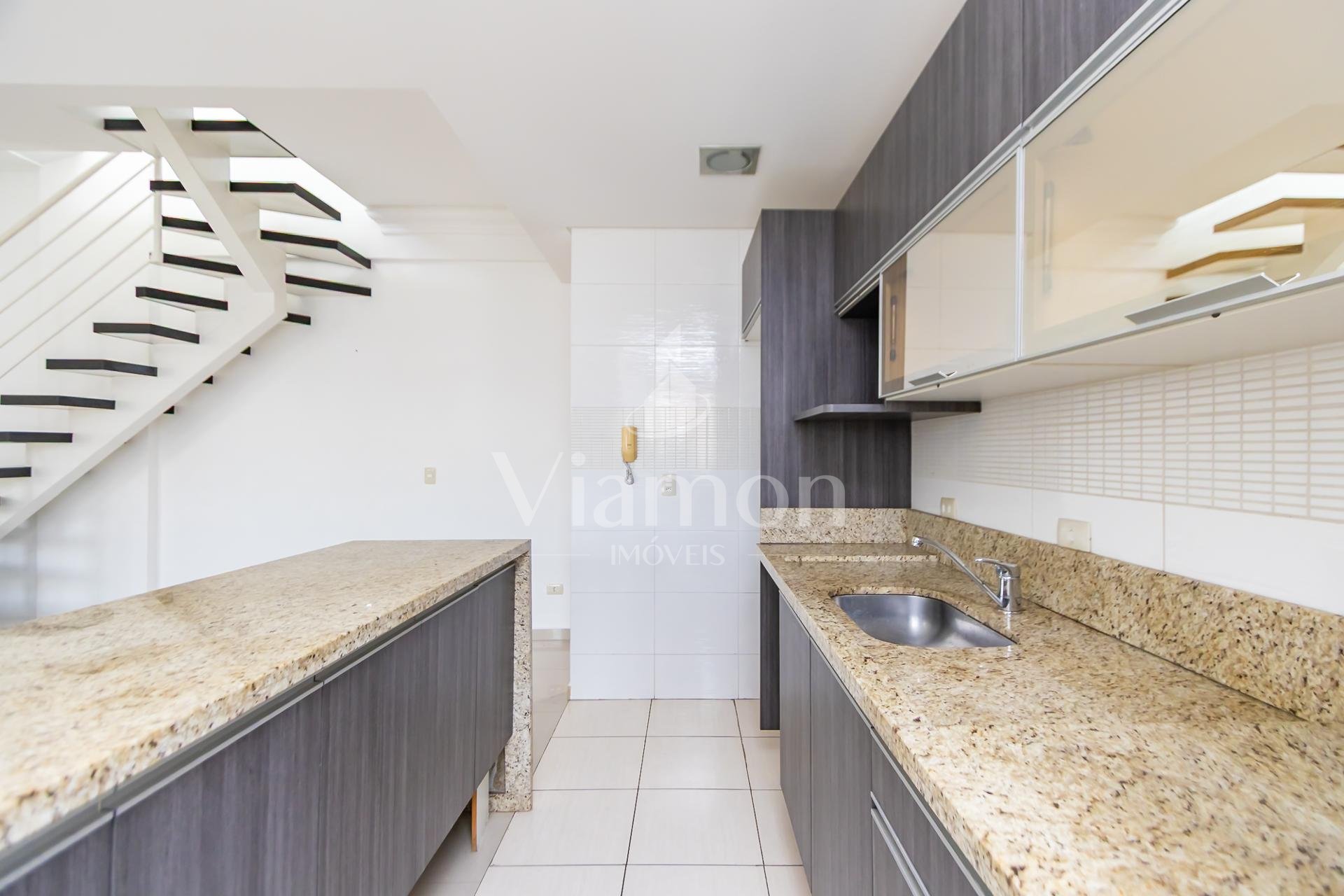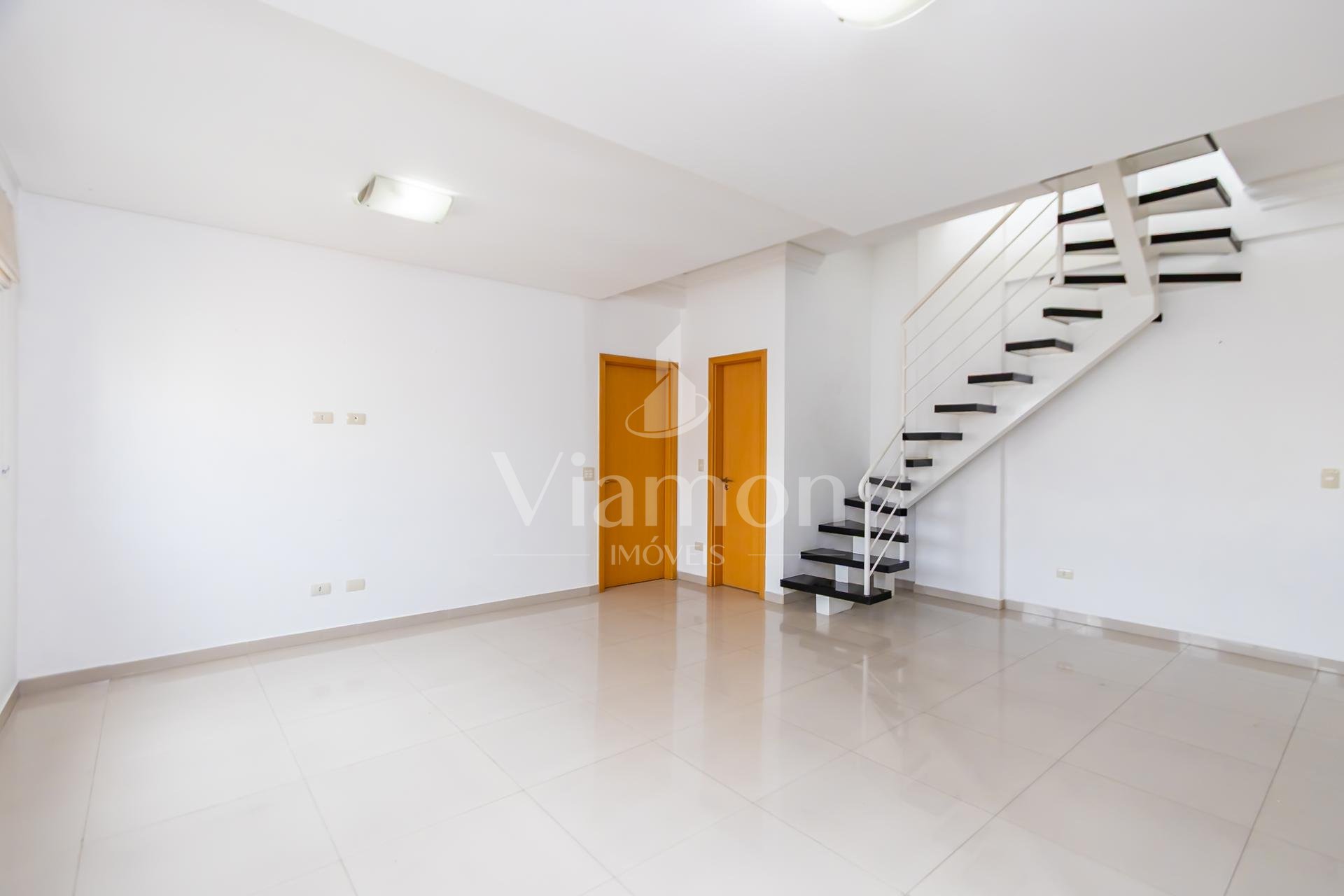 Duplex om 2 dormitórios, sendo a suíte (com amplo closet) no pavimento inferior, e o segundo quarto (que pode ser um Office) no pavimento superior.