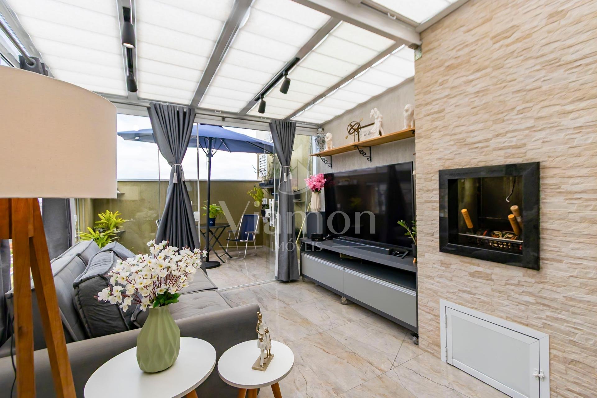 Cobertura localizada em PinhaisPR no bairro Emiliano Perneta, no condomínio Grand Chateau ao lado do PARCÃO, próximo ao shopping Jockey Plaza, DETRAN, Havan, Atacadão, Nichele, Burger King, Casa do Produtor e conta com:
