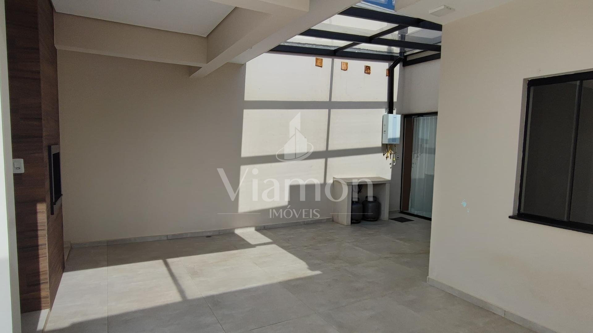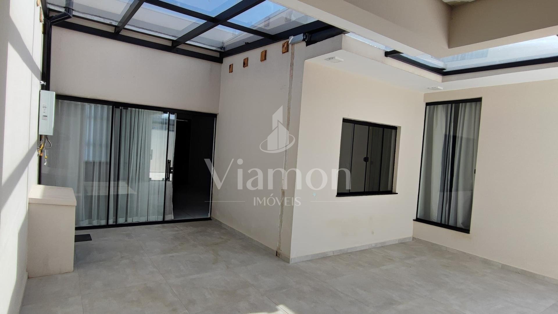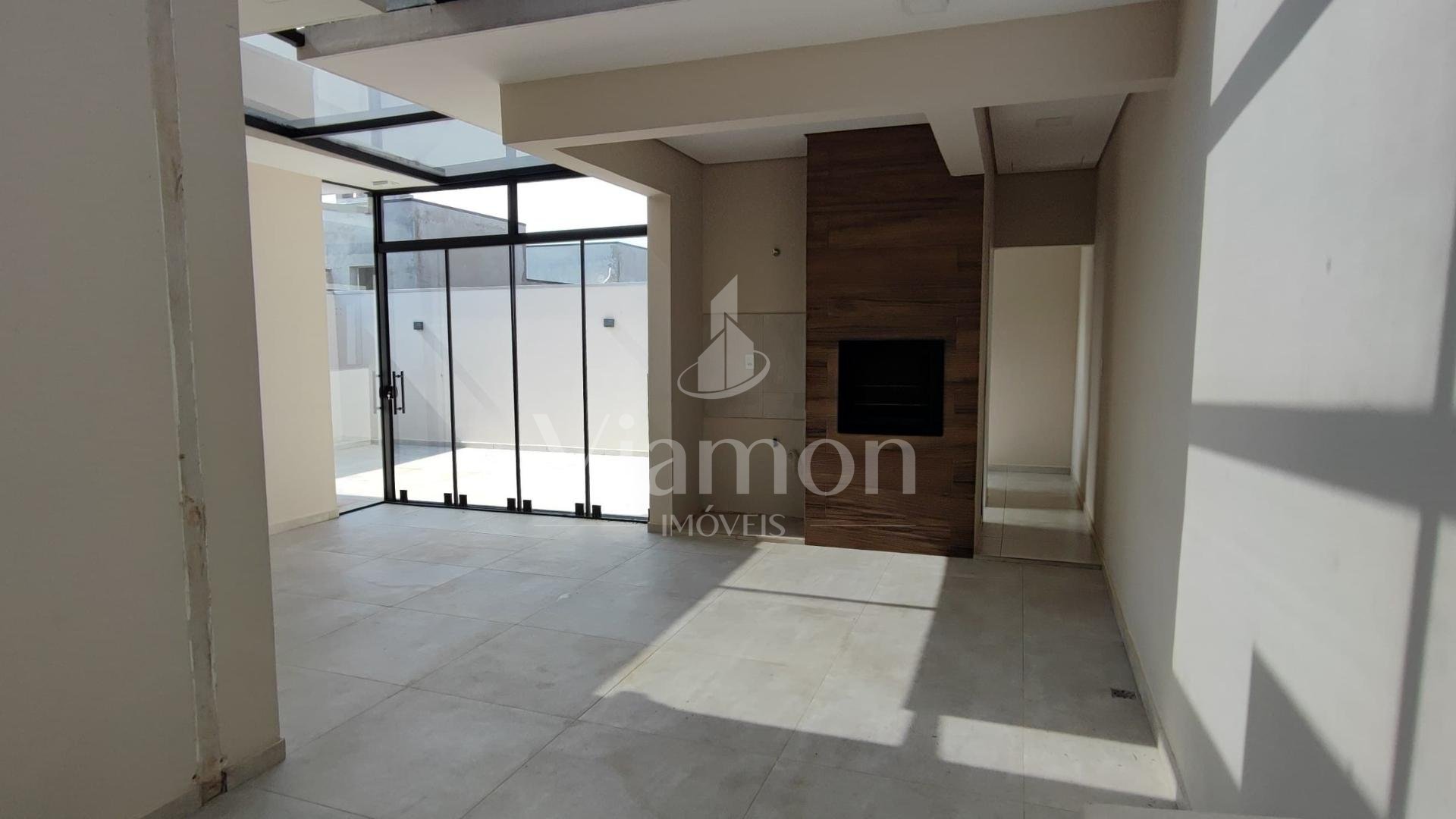 Possui 3 dormitórios (1 suíte com closet e 2 com ar-condicionado), sala de estar, cozinha americana planejada equipada, área gourmet com churrasqueira, lavabo, lavanderia, espaço privativo com possibilidade de piscina e garagem coberta para 2 carros.