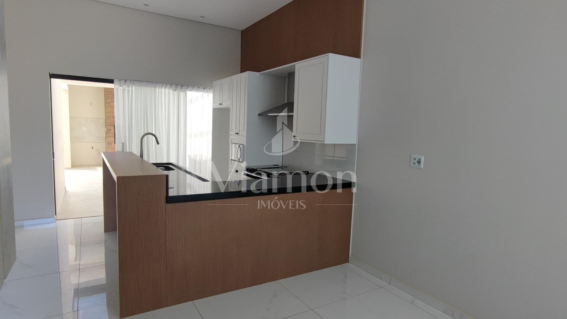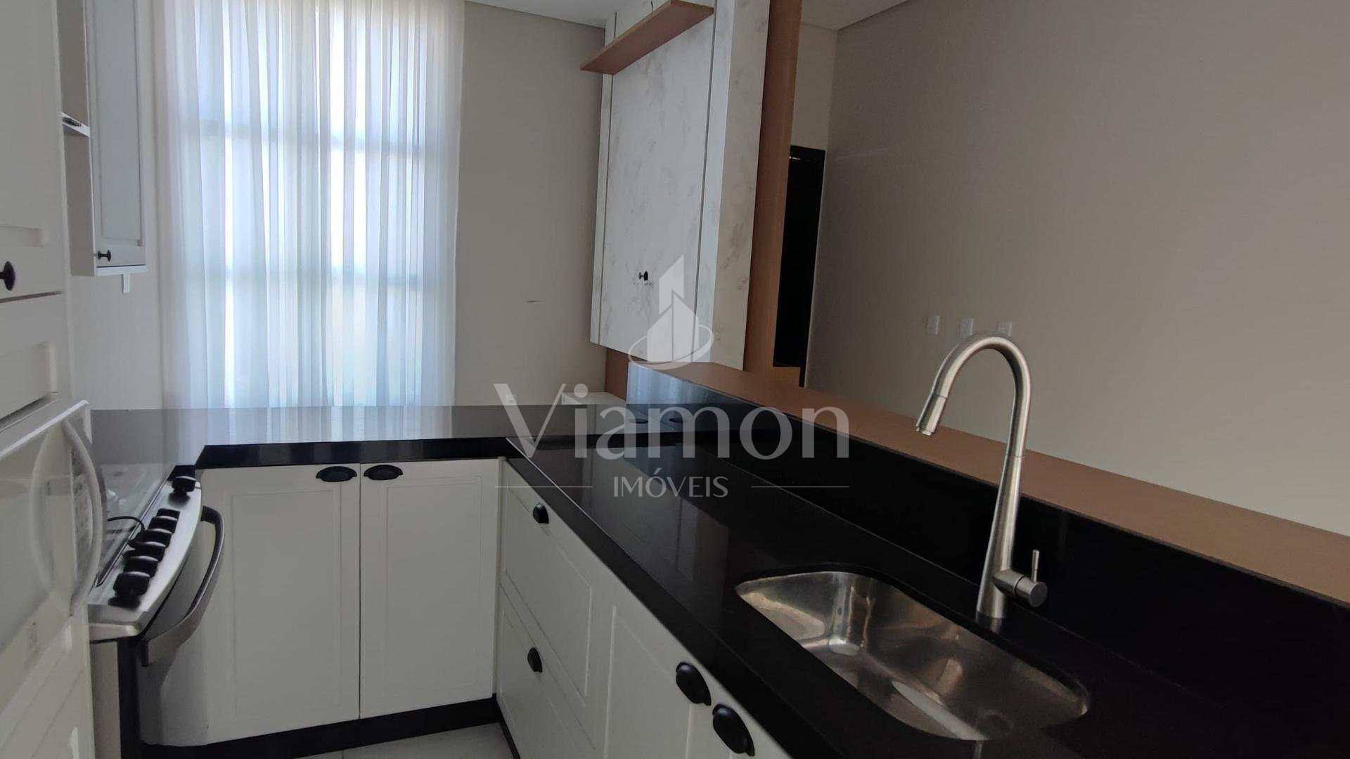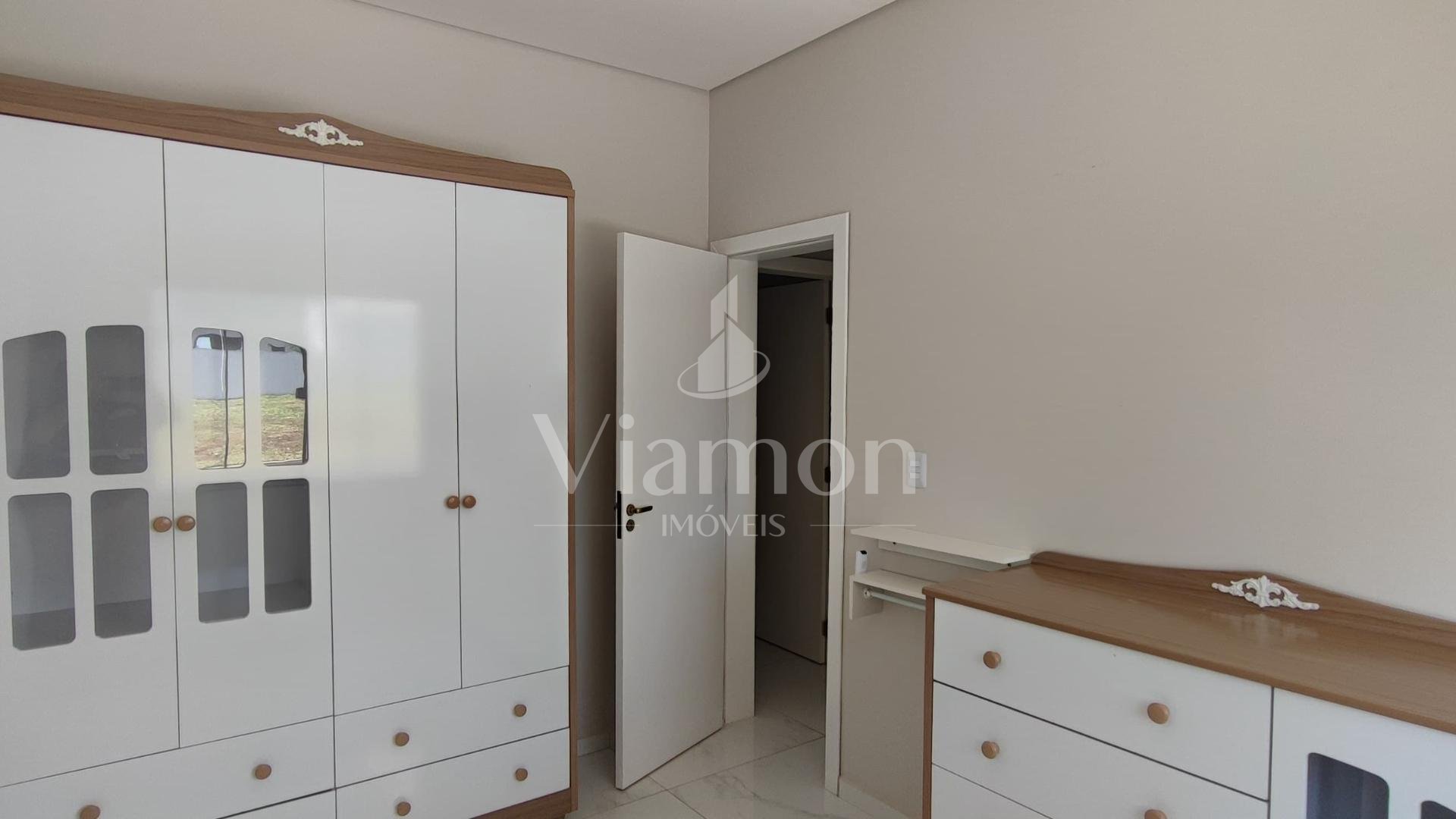 Possui 3 dormitórios (1 suíte com closet e 2 com ar-condicionado), sala de estar, cozinha americana planejada equipada, área gourmet com churrasqueira, lavabo, lavanderia, espaço privativo com possibilidade de piscina e garagem coberta para 2 carros.