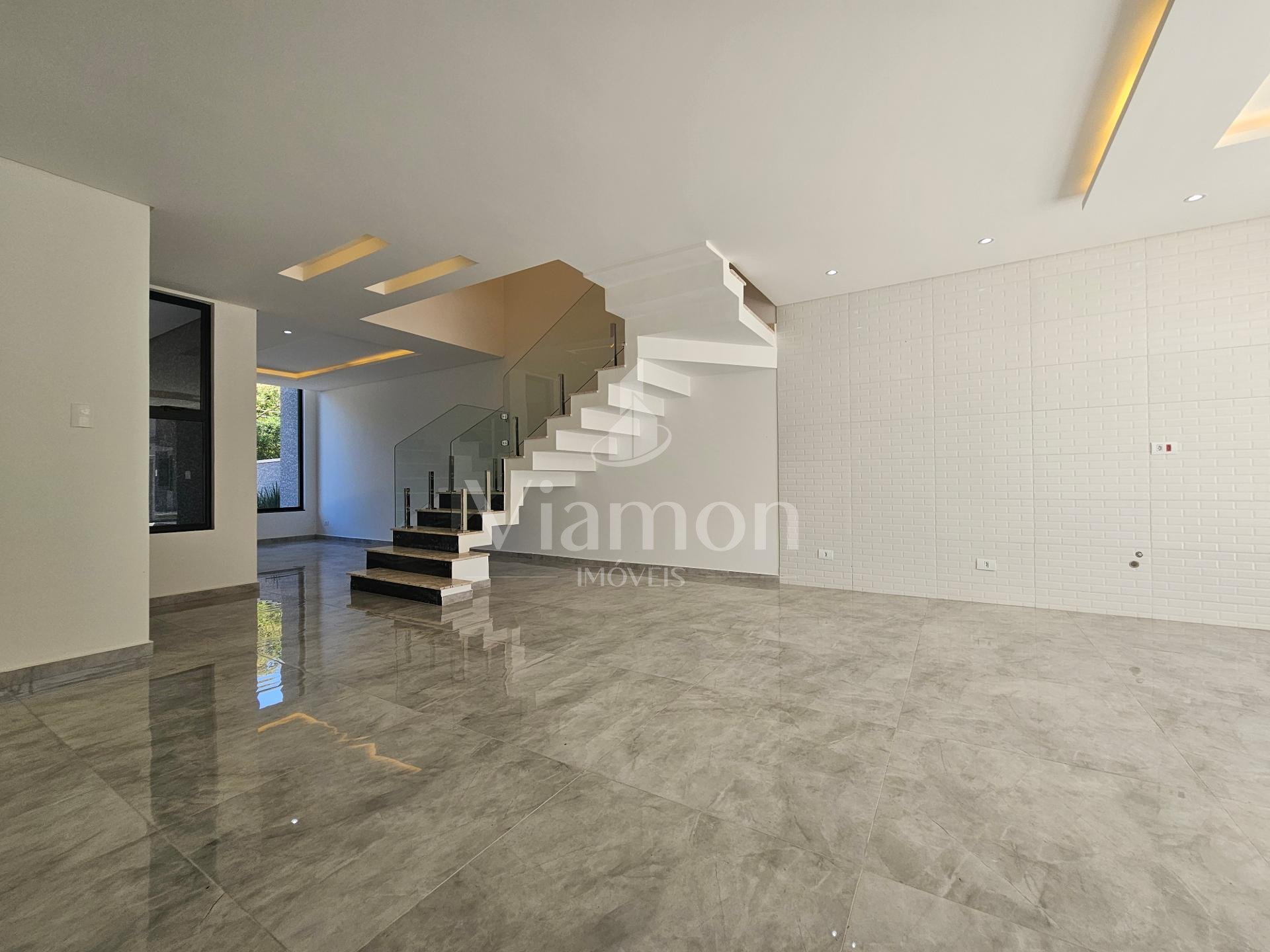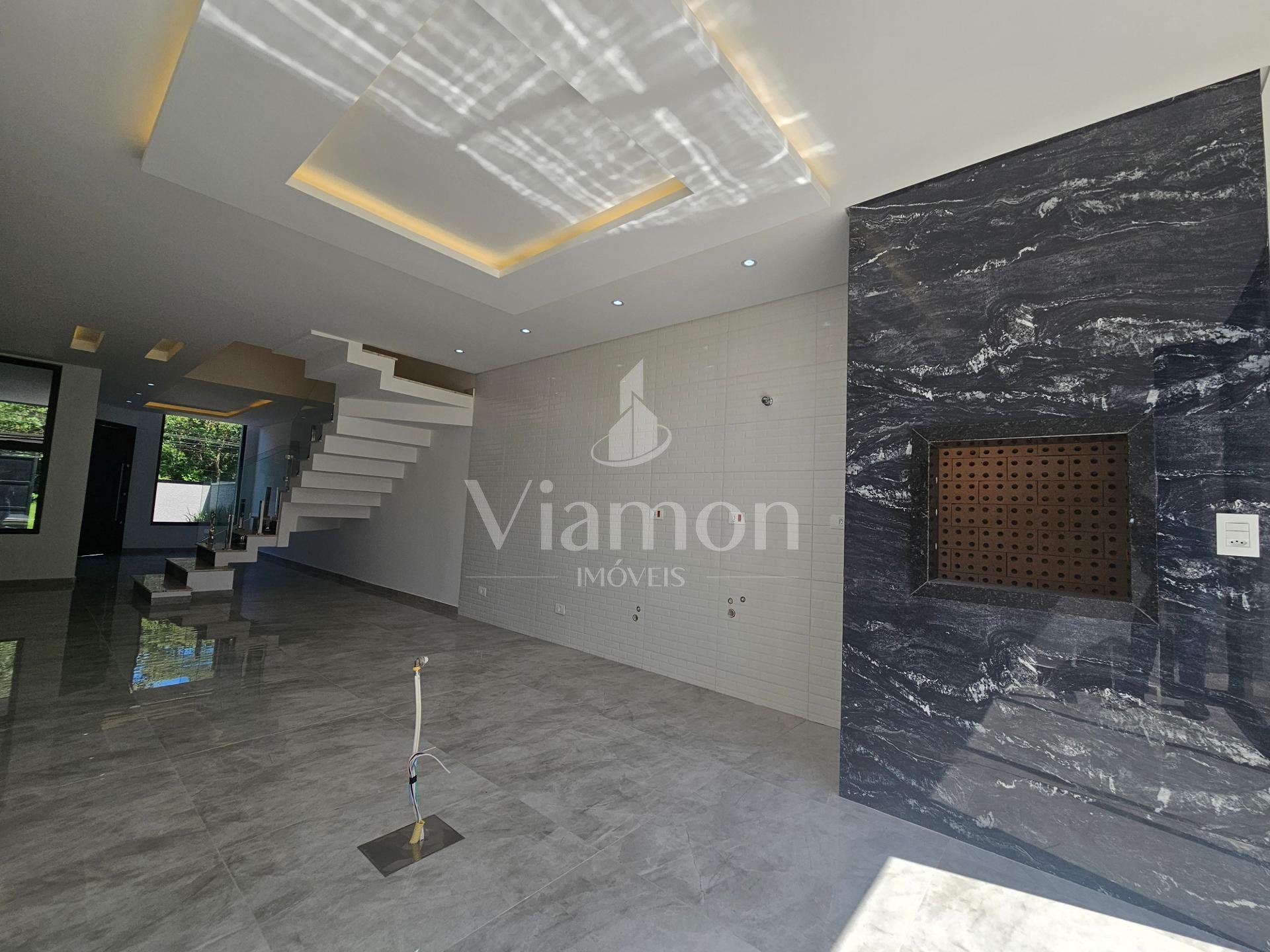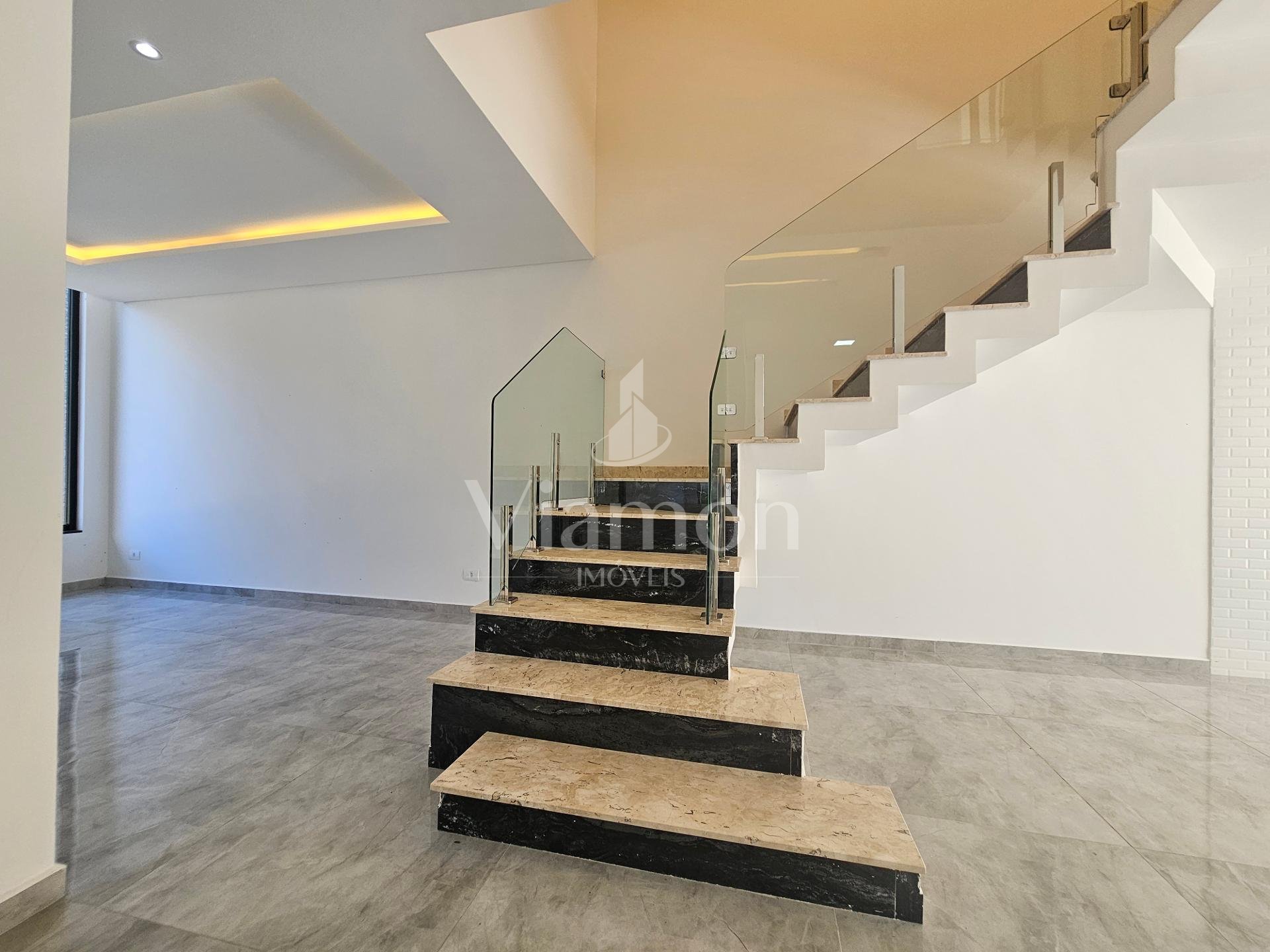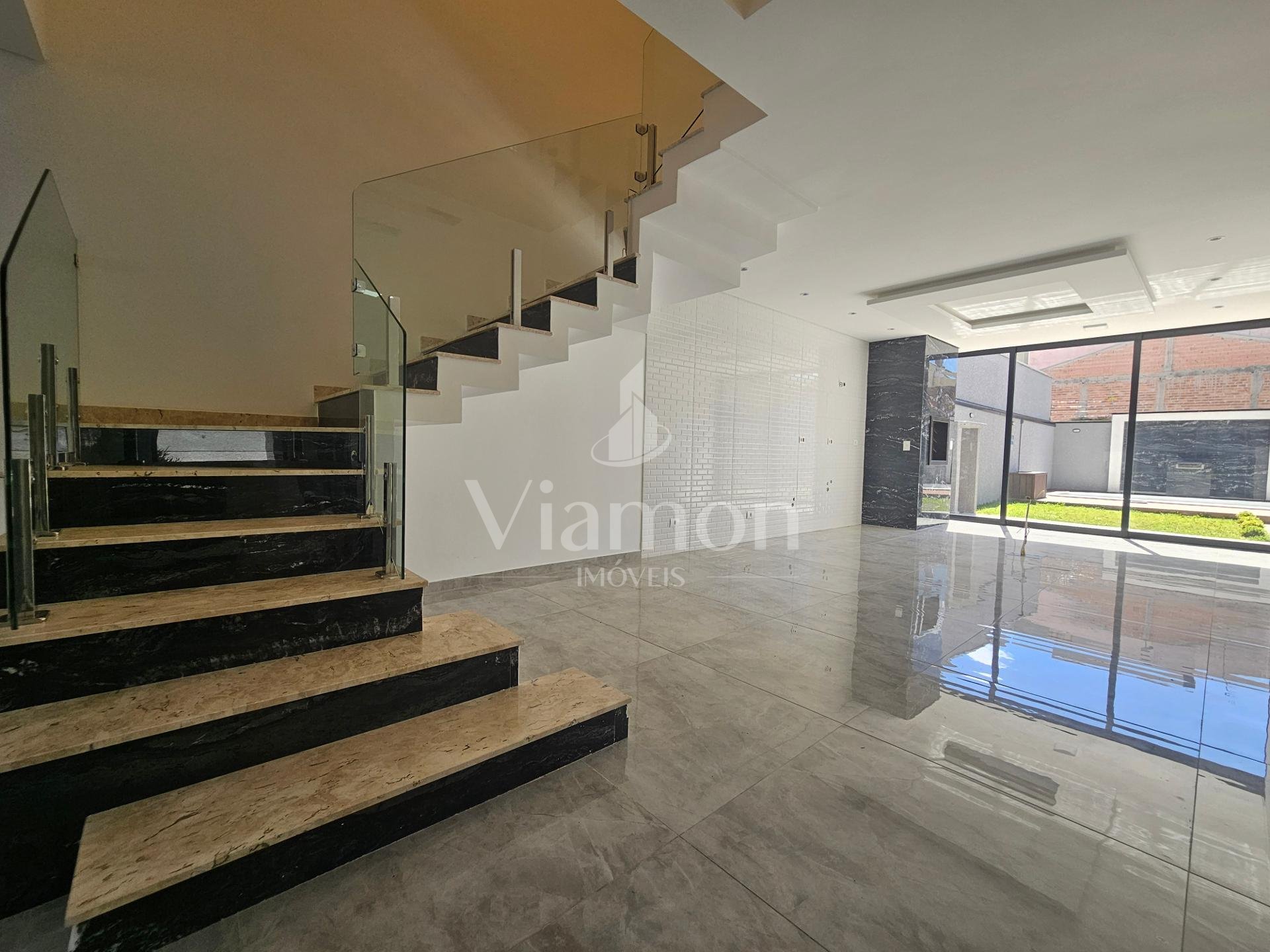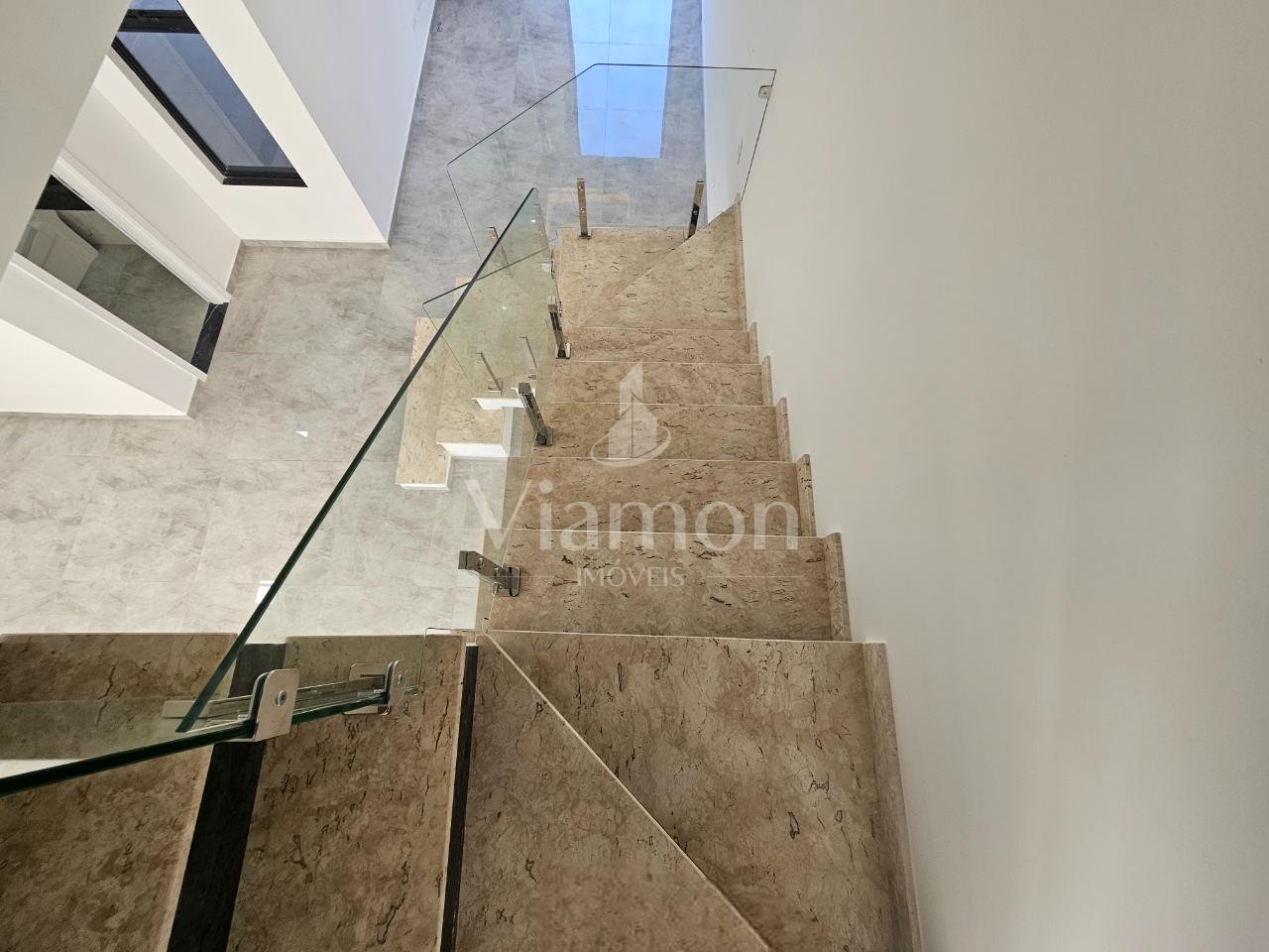 Escada de Granito com corrimão de vidro.