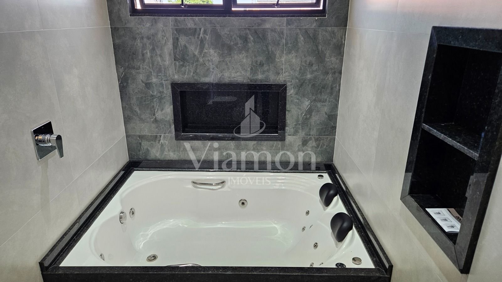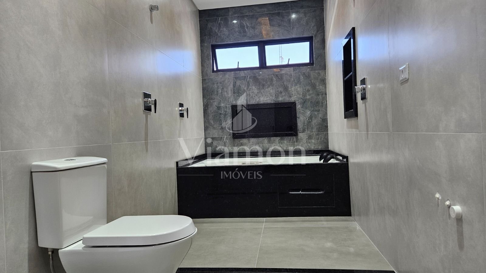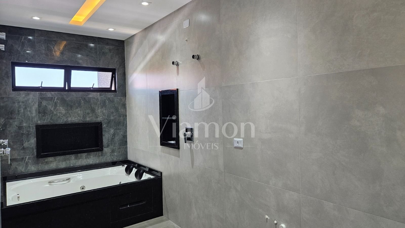Banheiros com torneiras monocomando e porcelanato de alta qualidade adicionam requinte, enquanto nichos em granito oferecem praticidade. O aquecimento de água por placas solares com sistema de boiler garante eficiência energética.