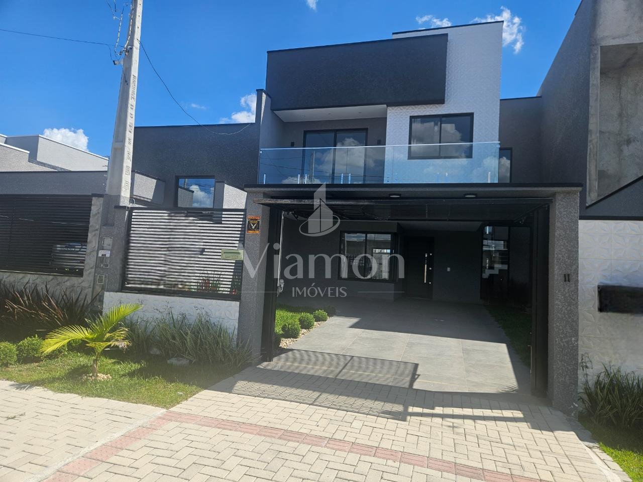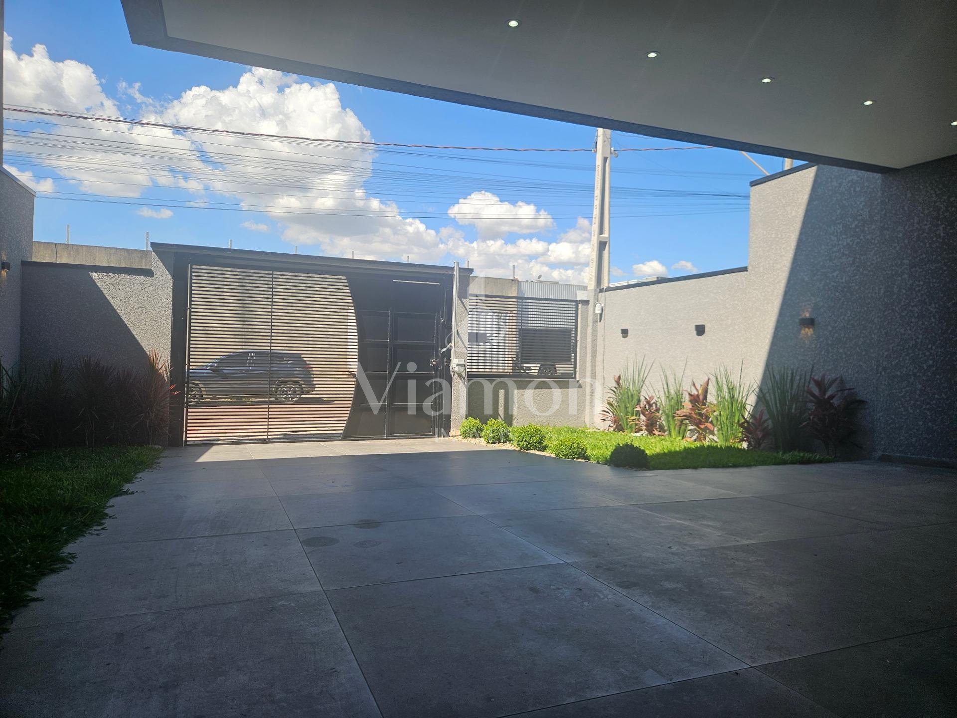 - Frente com Portão eletrônico Basculante e grades.