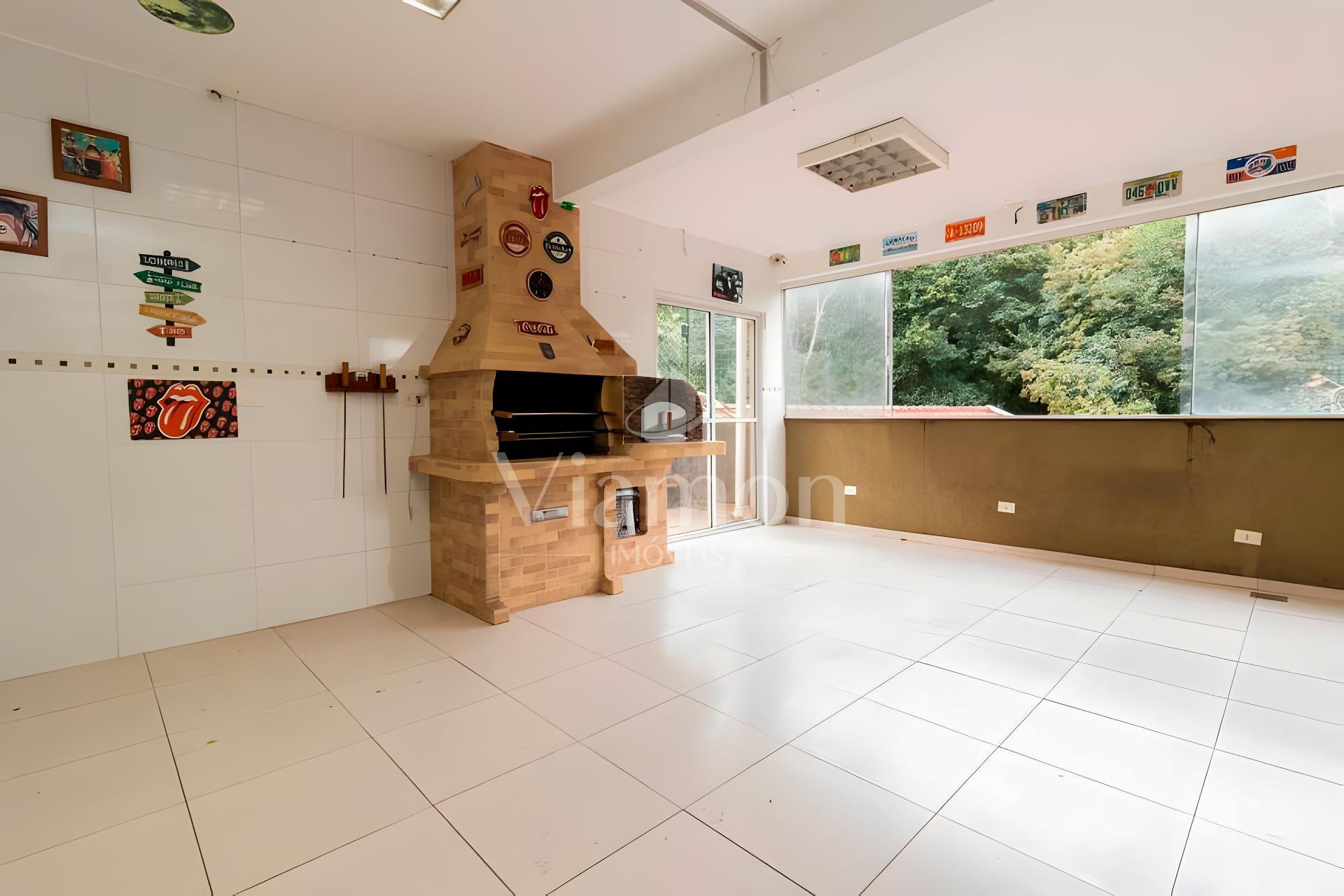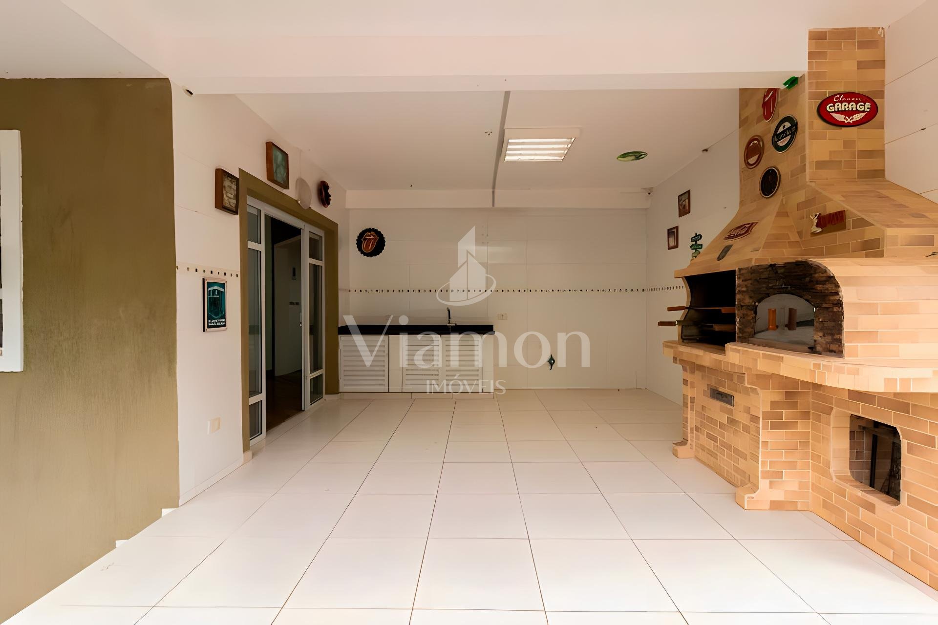 Área gourmet equipada com churrasqueira e forno de pizza, integrada ao quintal perfeita para confraternizações e momentos de lazer ao ar livre