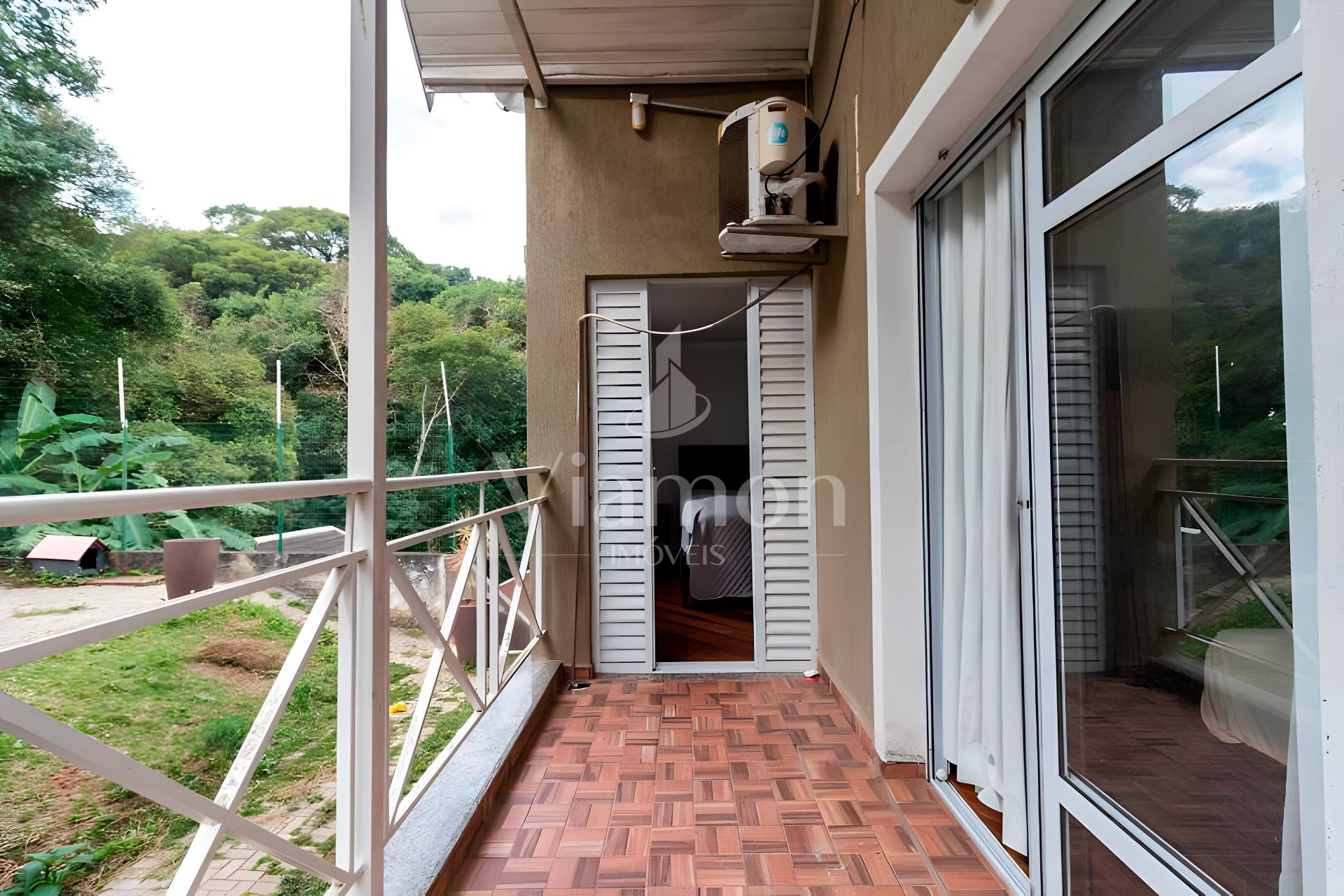 Quintal com jardim e vista para área verde de preservação