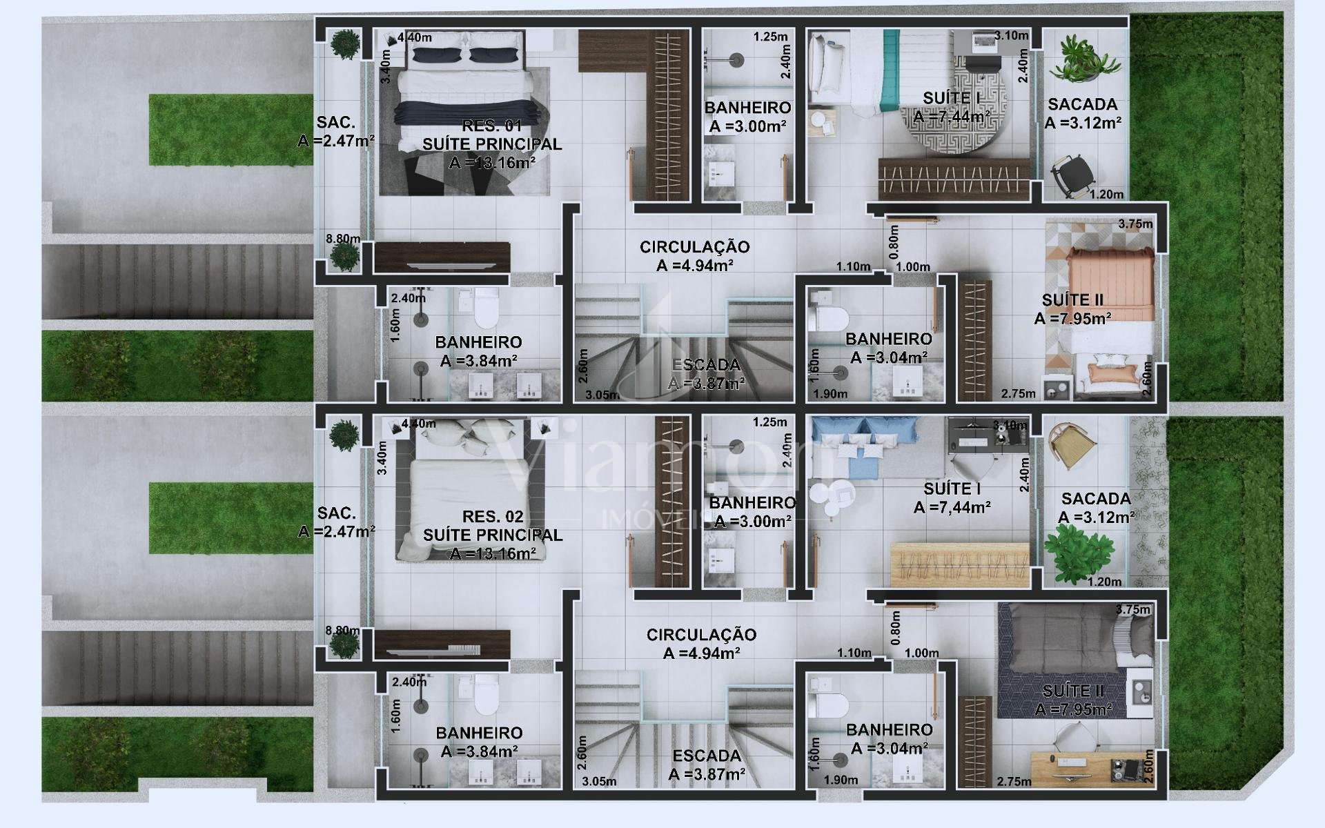 Unidade 03: 260,29 m² de área privativa | 187,92 m² de área construída | R$ 1.874.000,00