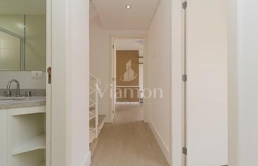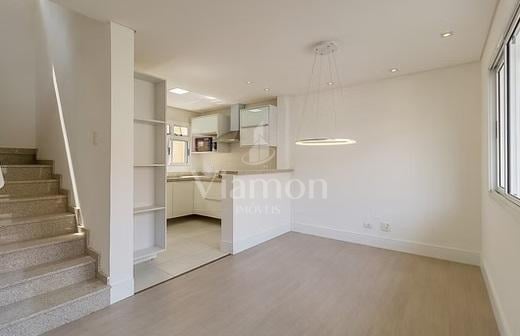 Sobrado em condomínio, com 94,36m² privativos, ambientes arejados, sendo o piso inferior distribuído em sala para dois ambientes, lavabo, cozinha com acesso a churrasqueira e área de serviço. Segundo piso com banheiro social, 3 dormitórios sendo um desses suíte e ático com aproximadamente 25m² com espaço para estar íntimo e home office.