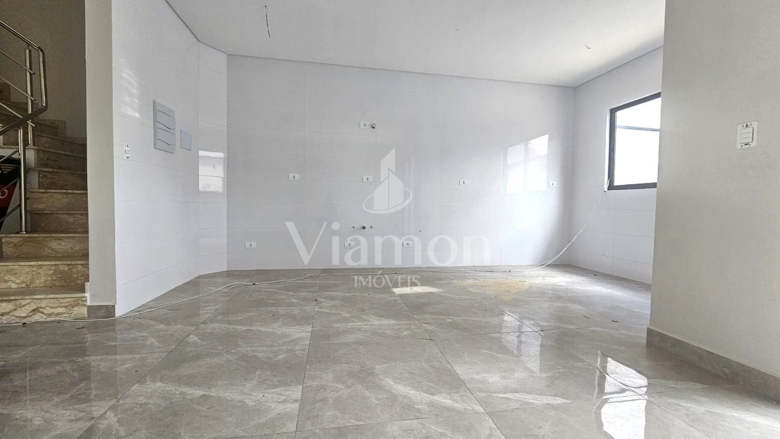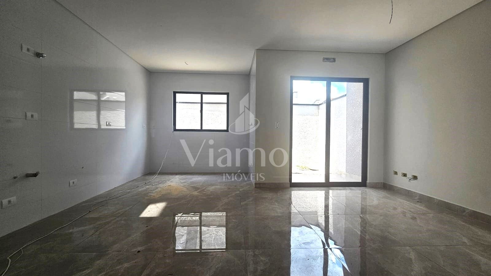 Piso térreo: ampla sala e cozinha em conceito aberto, lavabo, área de serviço e garagem.
