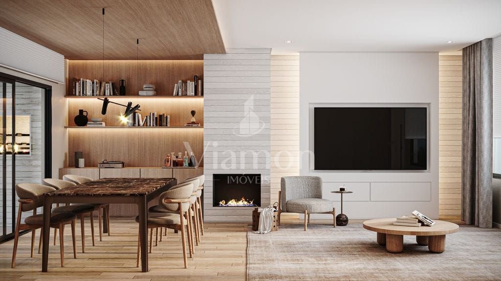 Sala de estar com lareiraSuíte ampla com espaço para closet e piso aquecido nos banheiros;