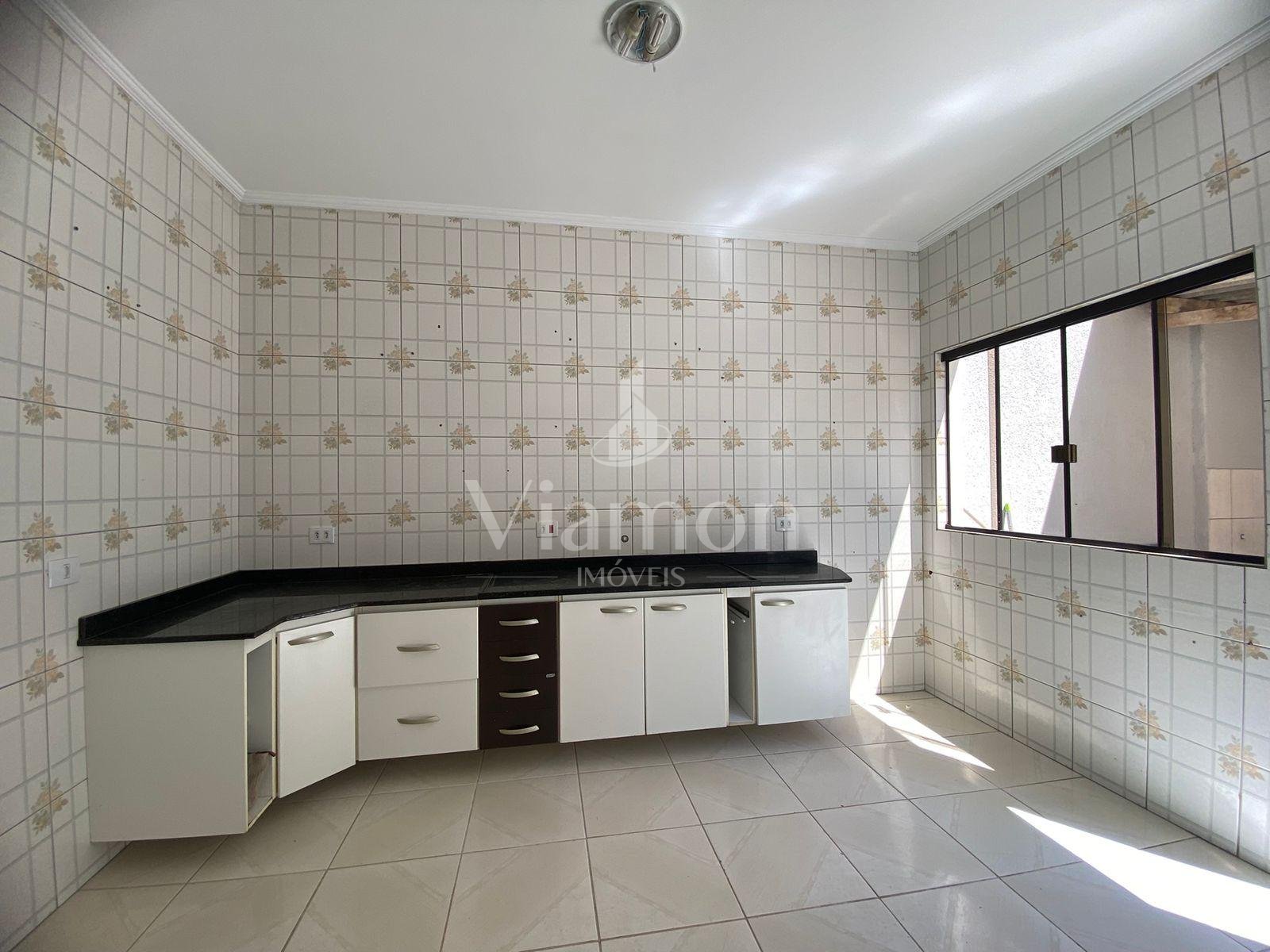 Cozinha espaçosa e com armários.
