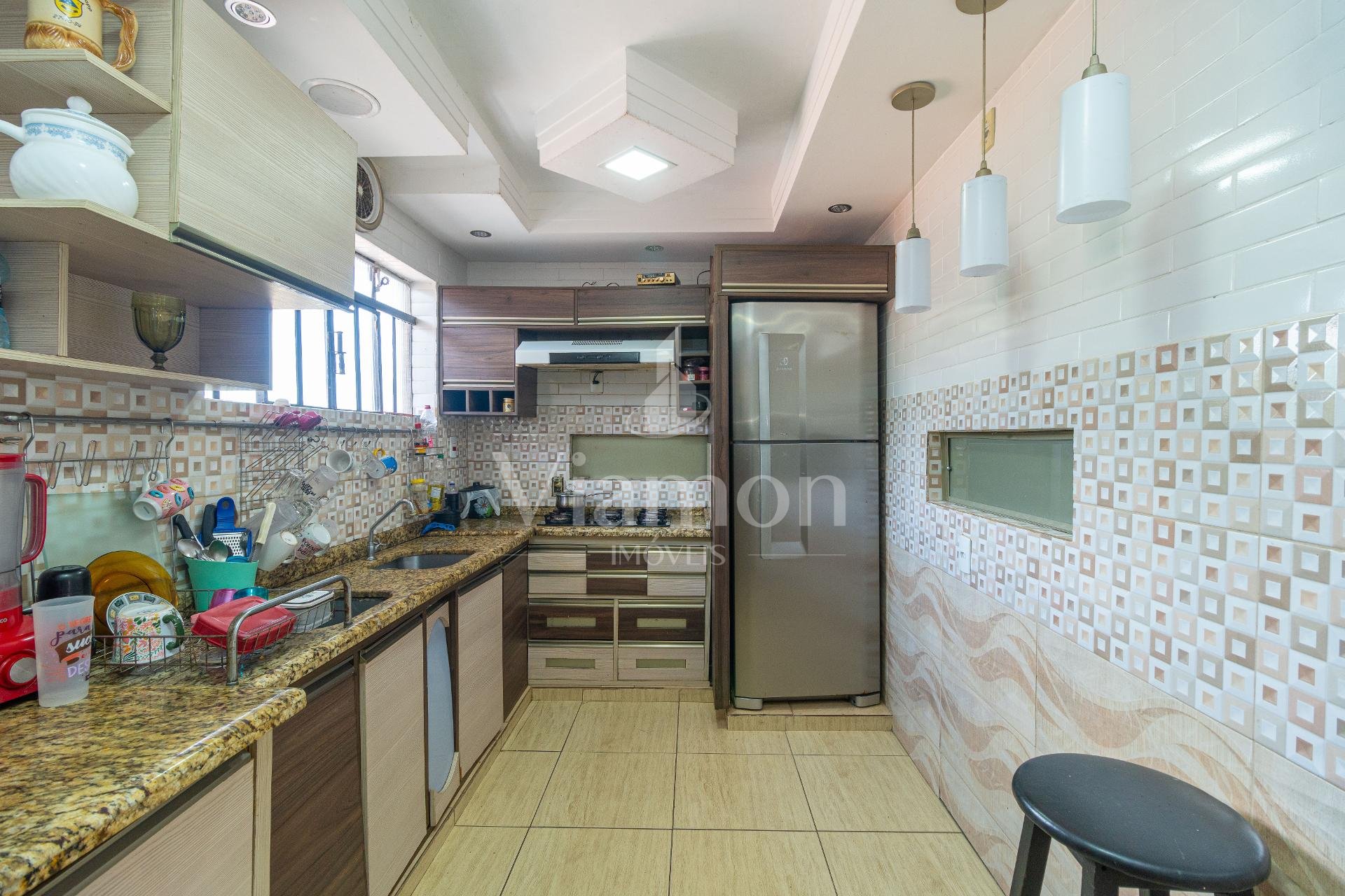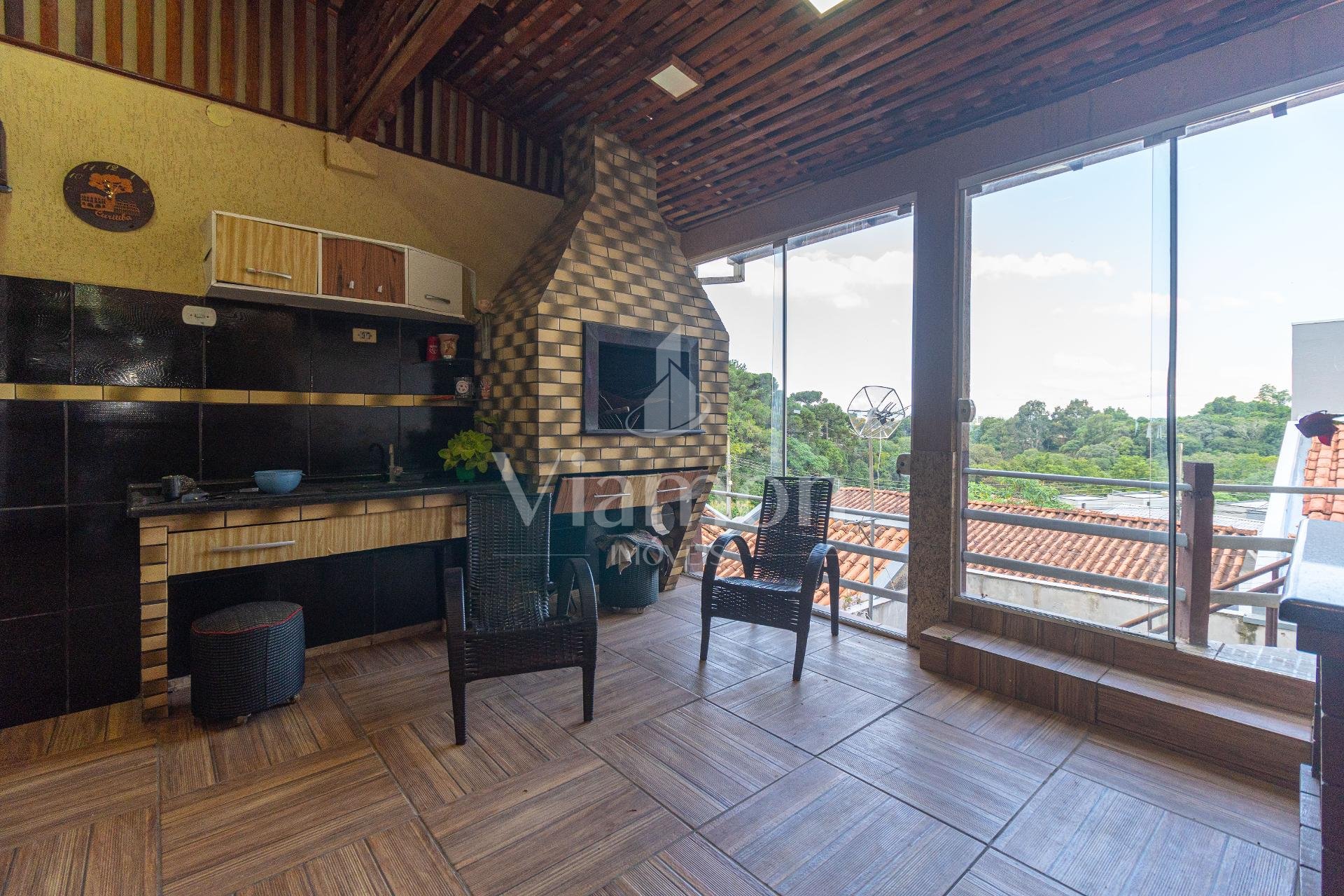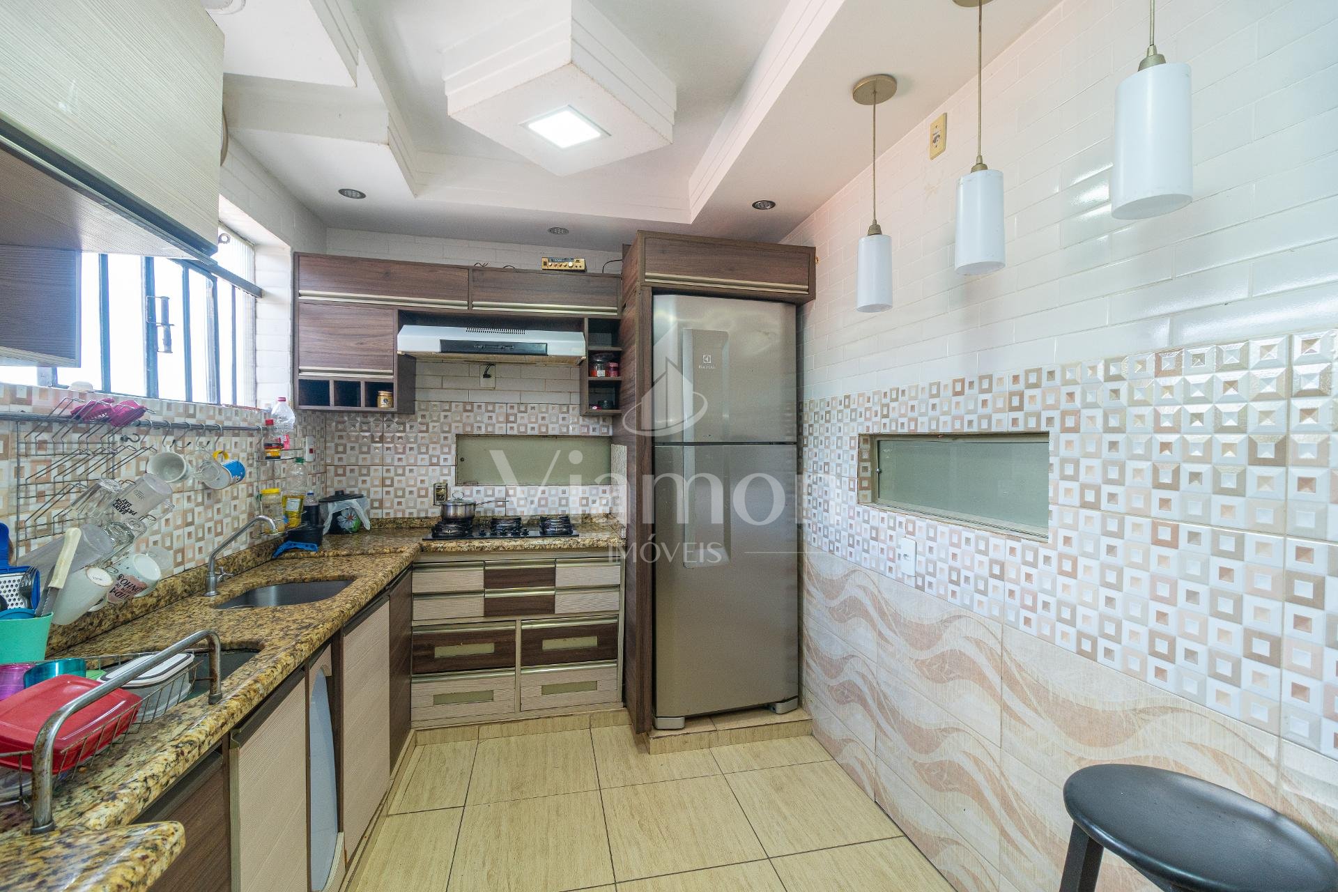 A cozinha, equipada com móveis planejados, foi desenhada para unir praticidade e estética. A área de serviço é funcional e bem distribuída, complementando o dia a dia com eficiência. Já a área gourmet com churrasqueira cria o cenário ideal para momentos de lazer e convívio.