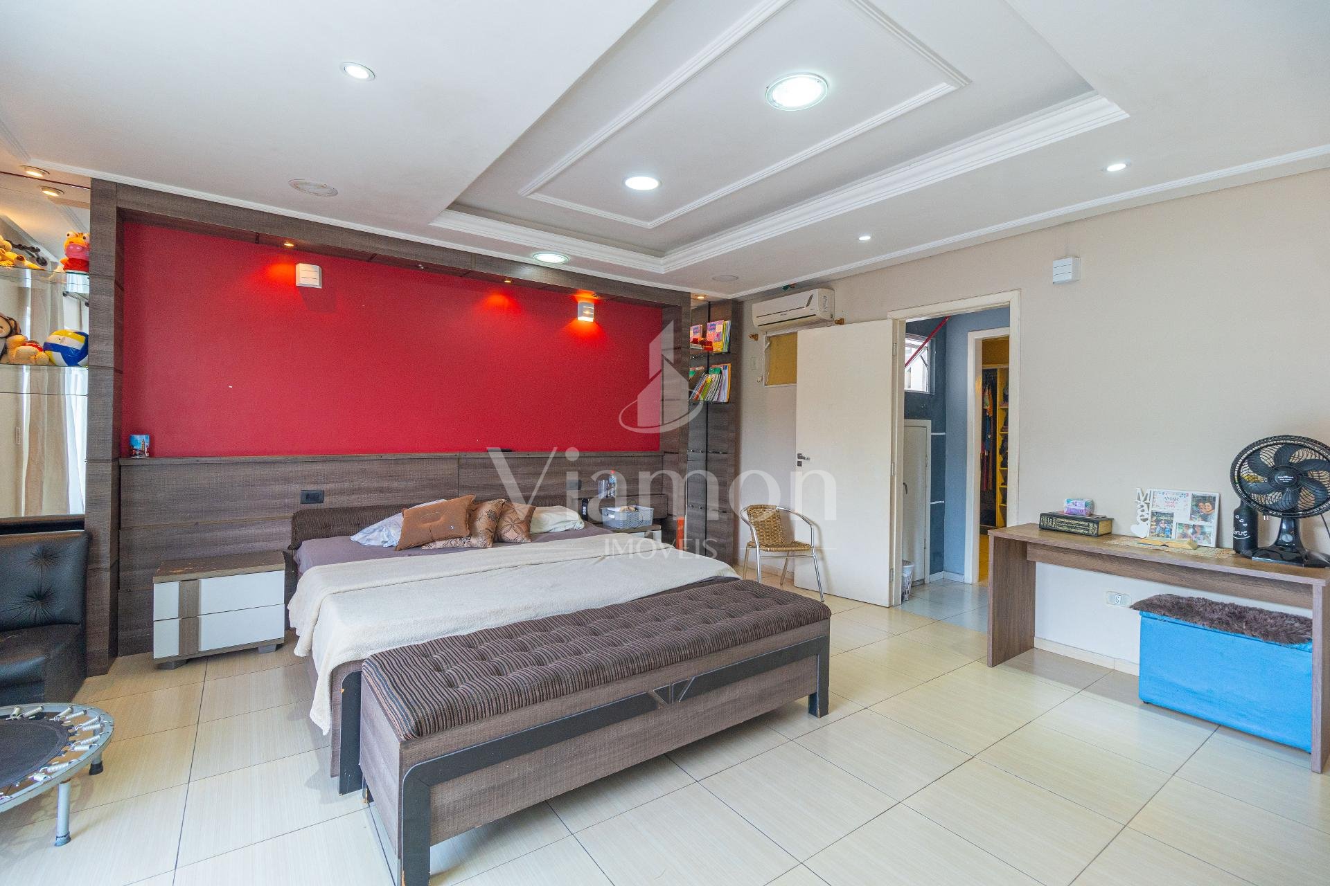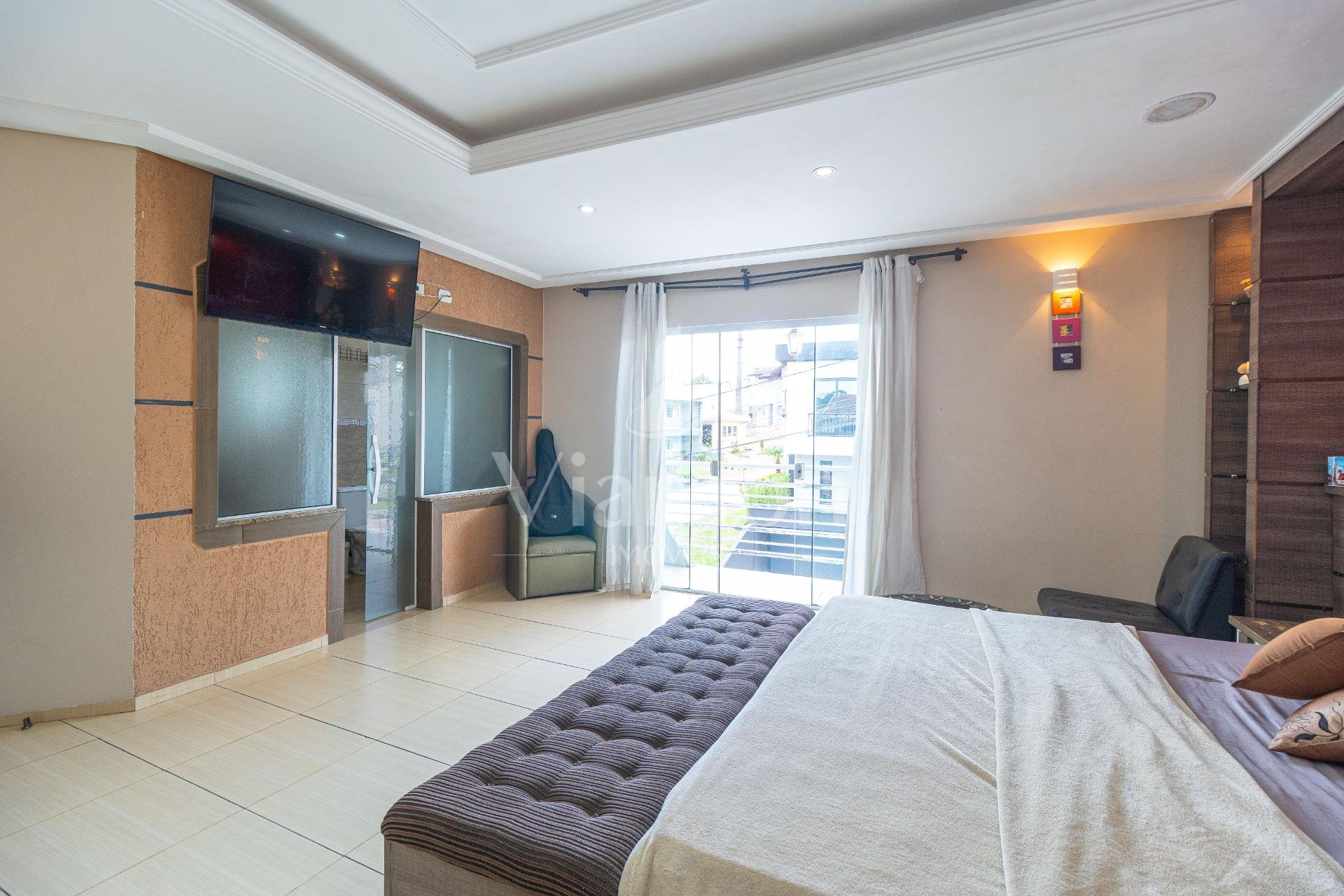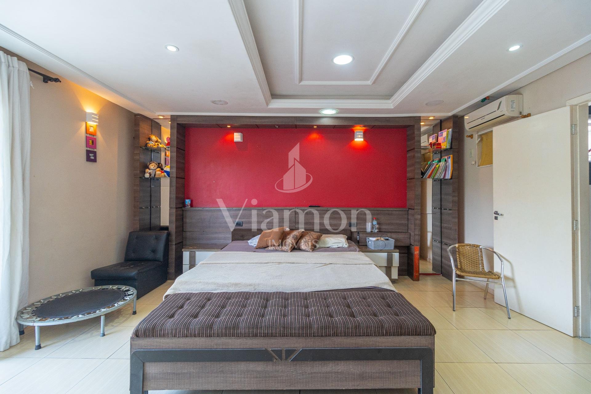 O imóvel conta com quatro quartos, incluindo uma suíte ampla que se destaca pelo conforto e atenção aos detalhes. A suíte master oferece uma experiência diferenciada, com cama king artesanal com colchão, espelhos planejados em ambos os lados, baú aos pés da cama, ar-condicionado, closet espaçoso e um banheiro preparado para receber banheira dupla, com pia oval e box em vidro até o teto.
