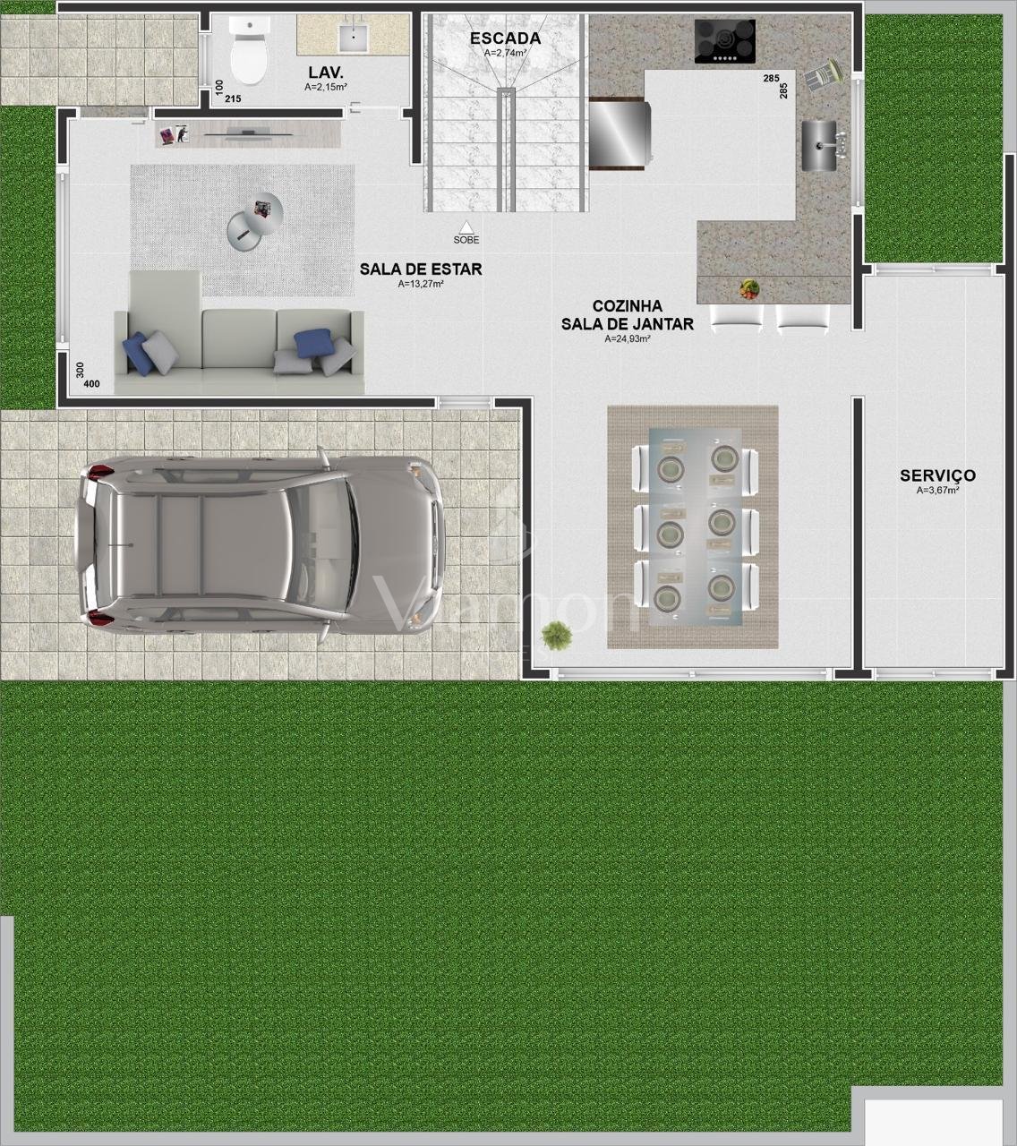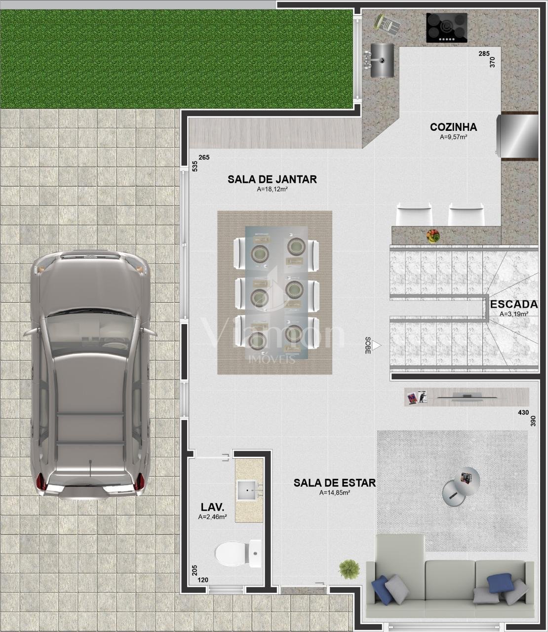 - Garagem para 2 veículos, em vaga dupla (uma atrás da outra);