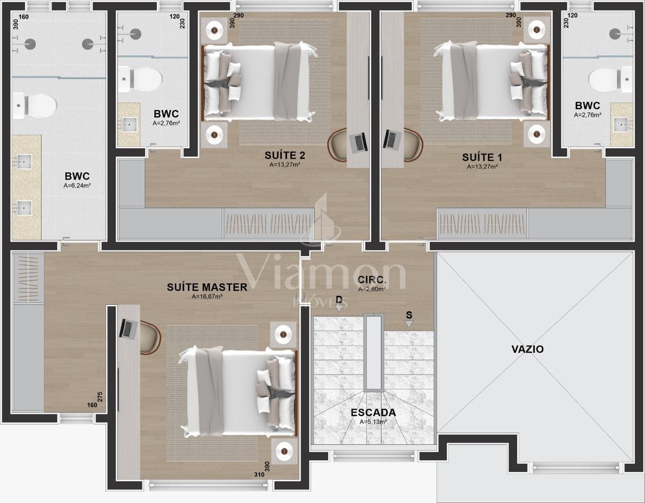 - Aberturas integradas em alumínio, que garantem melhor ventilação e iluminação natural.