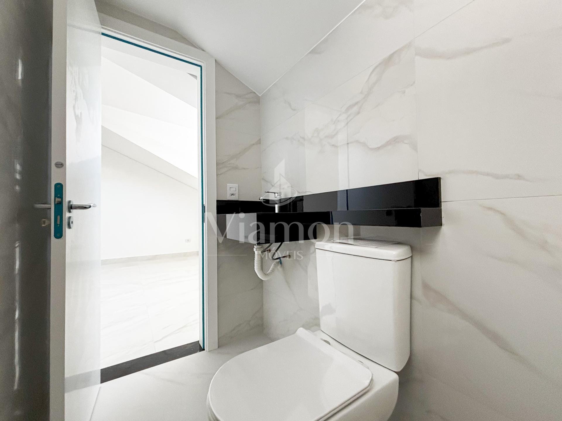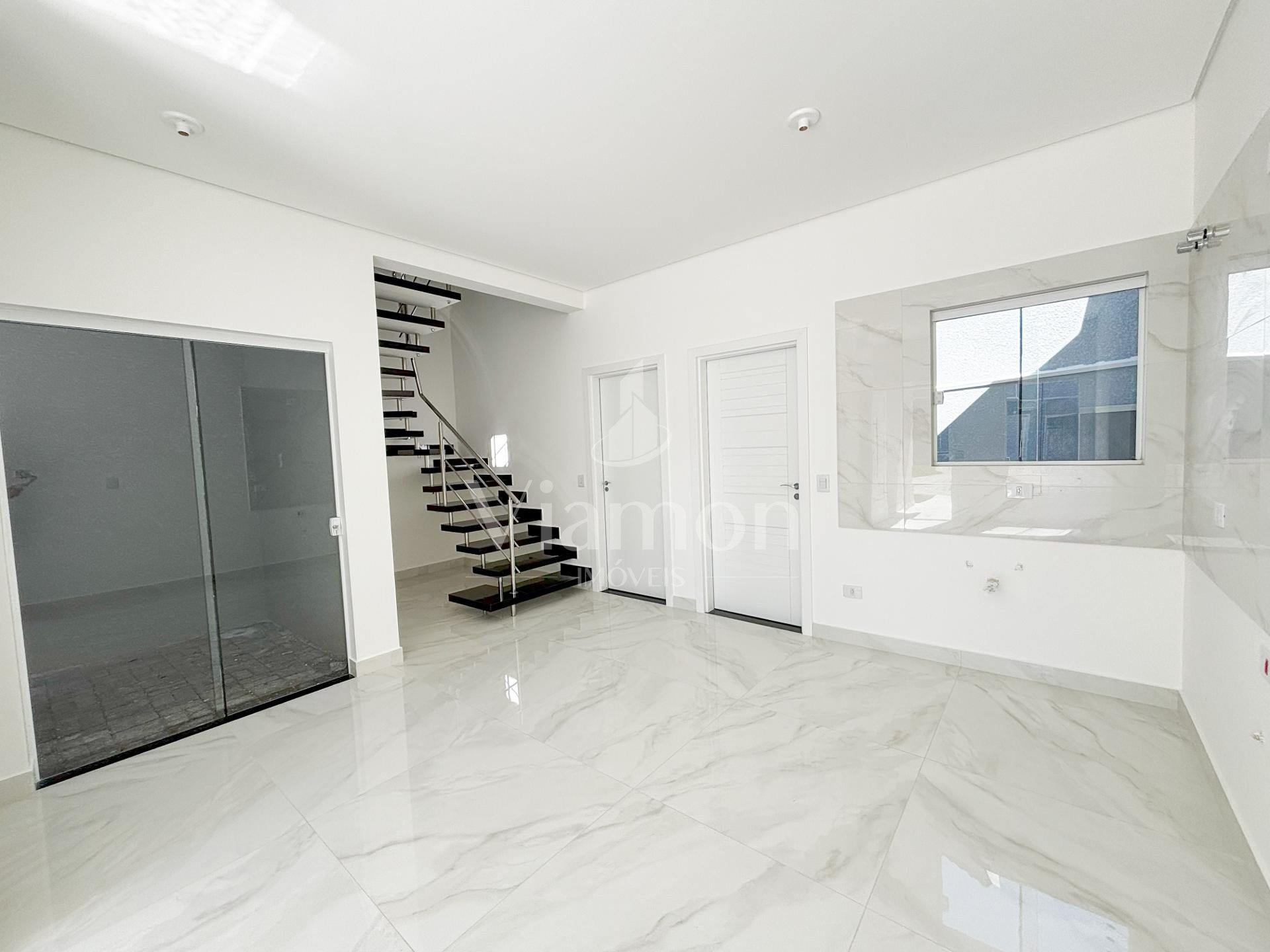 O imóvel dispõe de 2 quartos + amplo ático (ideal para suíte ou espaço de lazer), lindo gramado lateral que valoriza a entrada da cozinha, salão de acabamento de alto padrão. Banheiro impecável em porcelanato e escada imponente completam o conjunto.