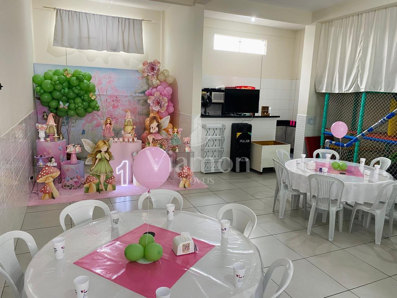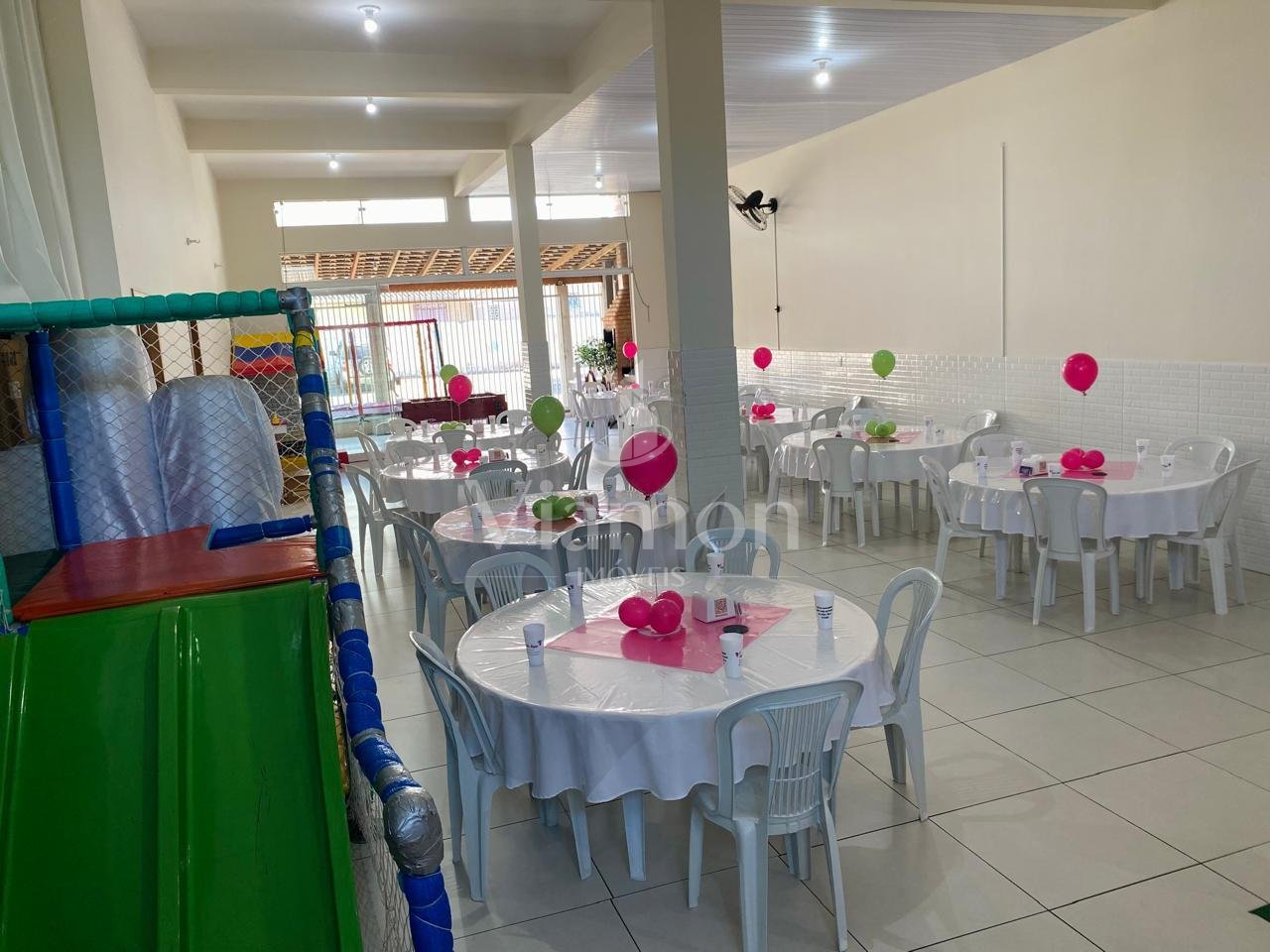 Atualmente, o pavimento térreo possui 120 m² e está alugado como salão de festas, gerando renda mensal de R$ 2.000,00.