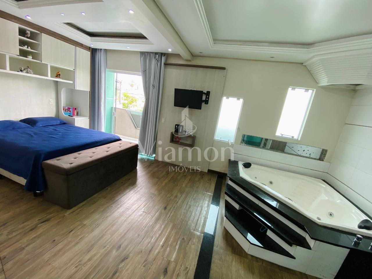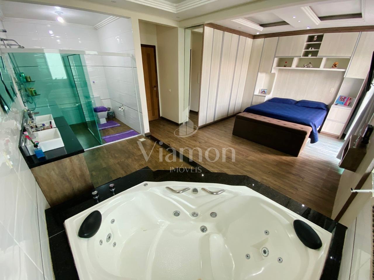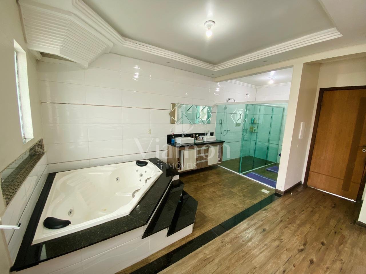 Suíte master de 35 m², espaçosa e elegante, equipada com banheira, perfeita para relaxar após um longo dia.