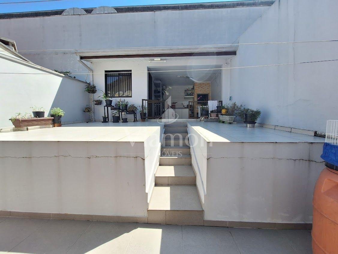 O pavimento superior conta com 3 quartos, sendo 1 suíte master, sala de estar e banheiro social.