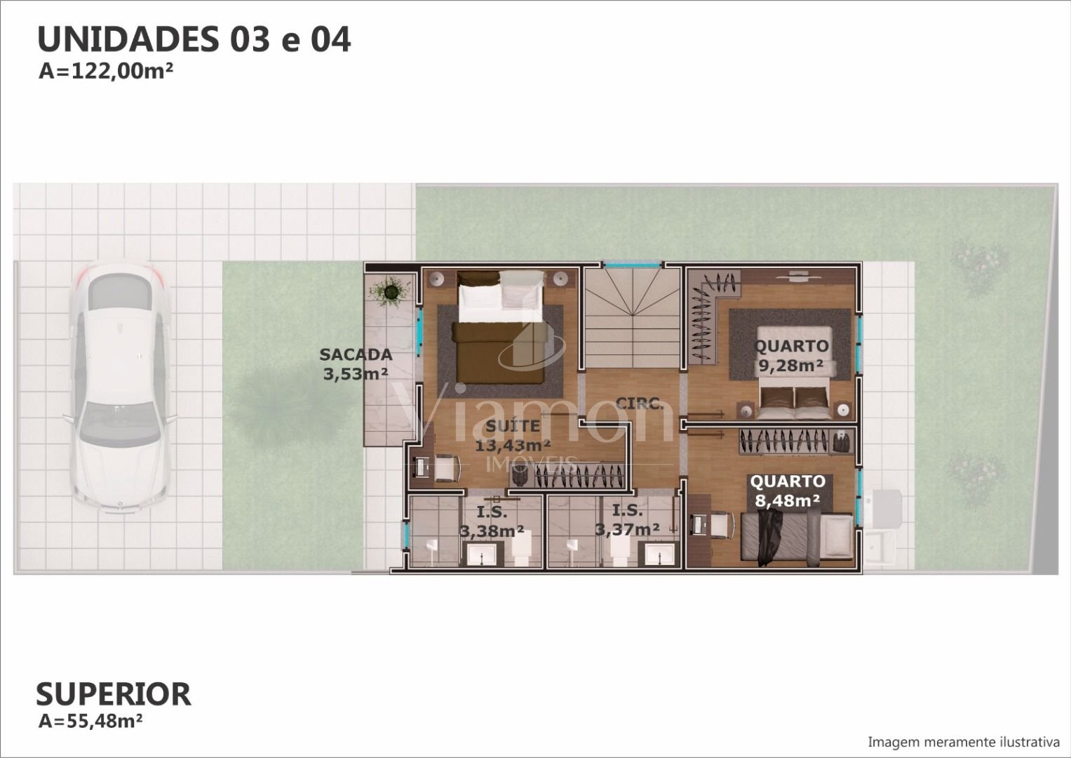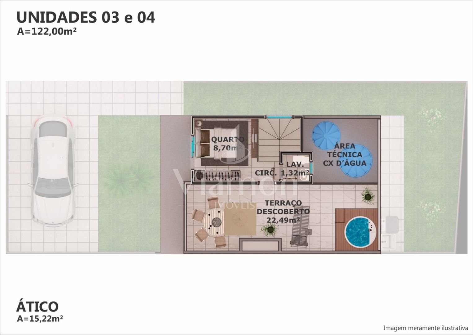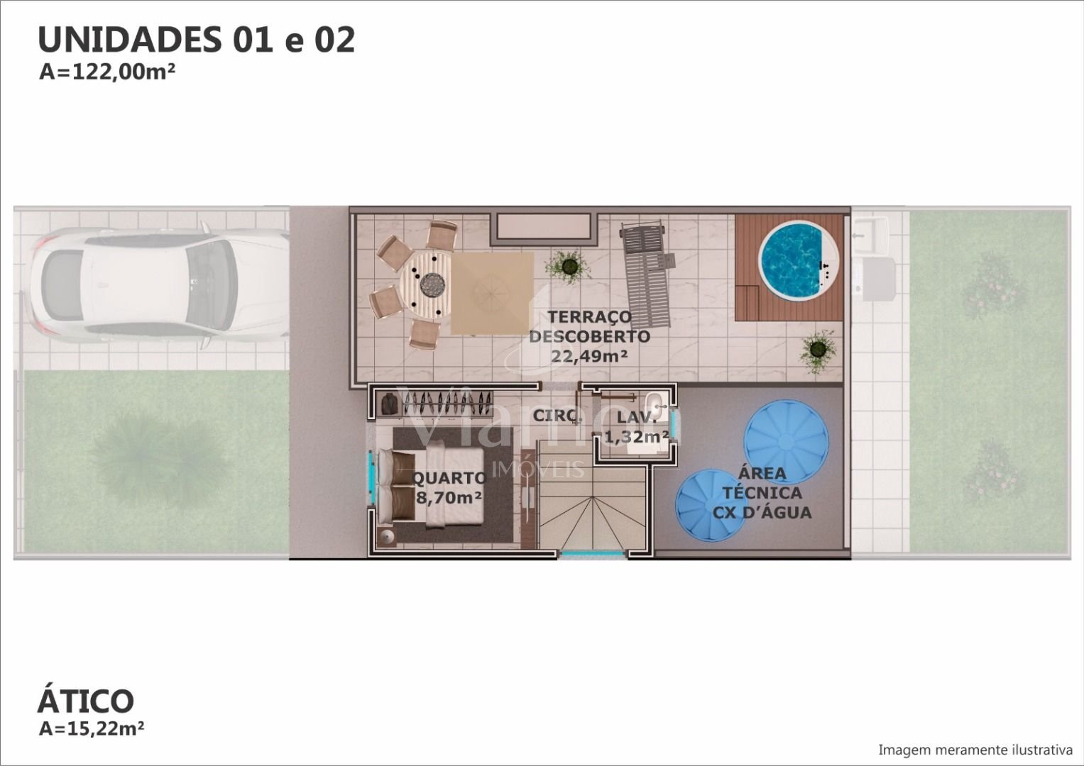 Espaço generoso: 122 m² de área útil + terraço de 25 m² para momentos de lazer.