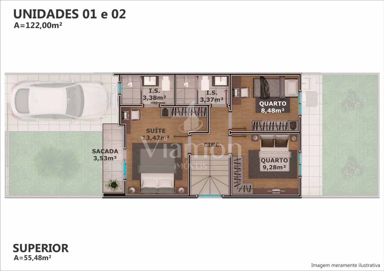 Garagem para 2 carros, sendo 1 coberta nas unidades de frente, com segurança e comodidade.