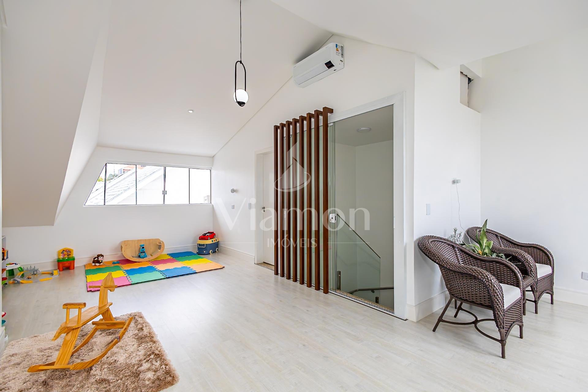Ático Multiuso: Espaço amplo e versátil, perfeito para seu Home Office, sala de cinema ou brinquedoteca.