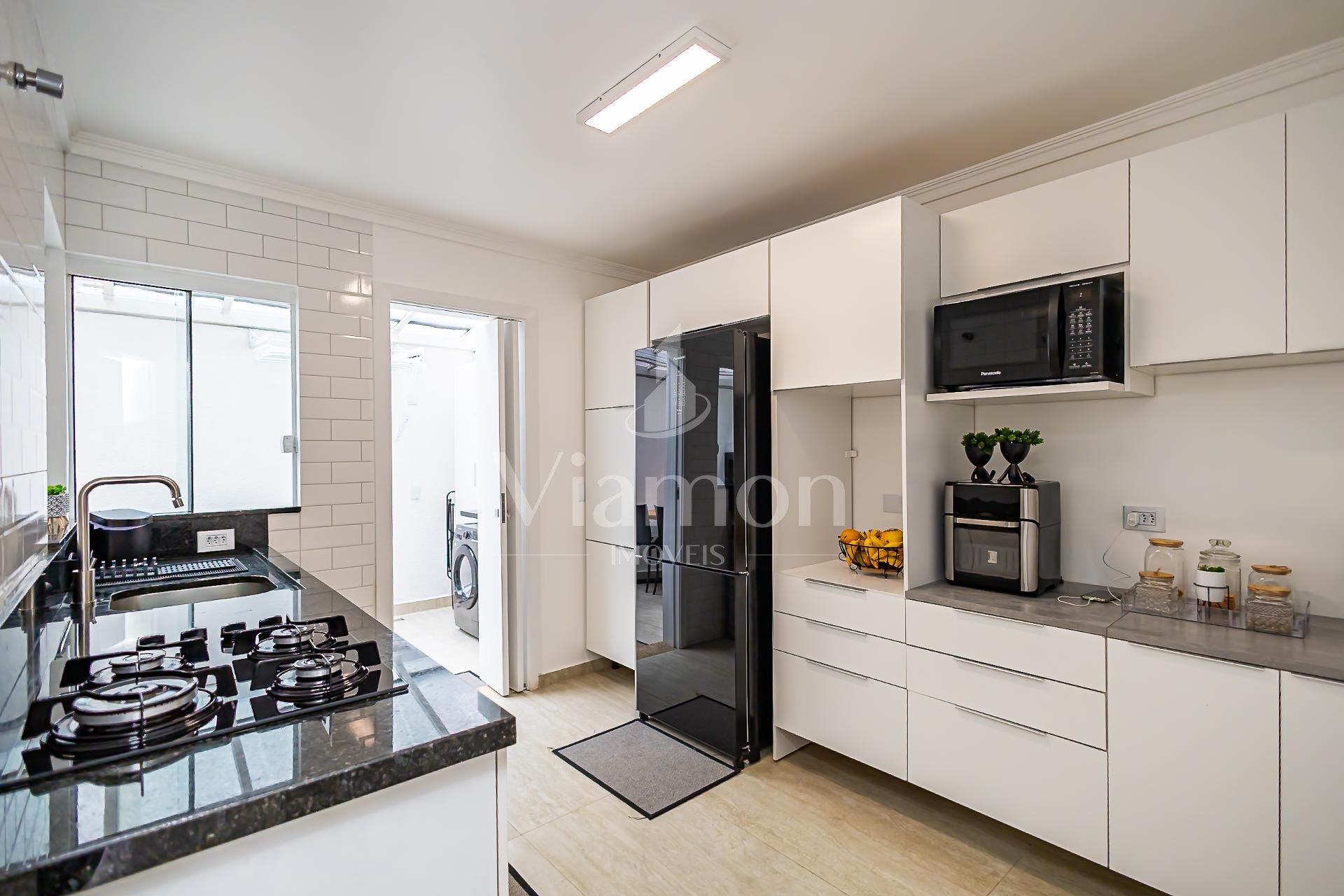 Praticidade no Dia a Dia: Cozinha com armários modulados de excelente padrão e lavanderia independente.