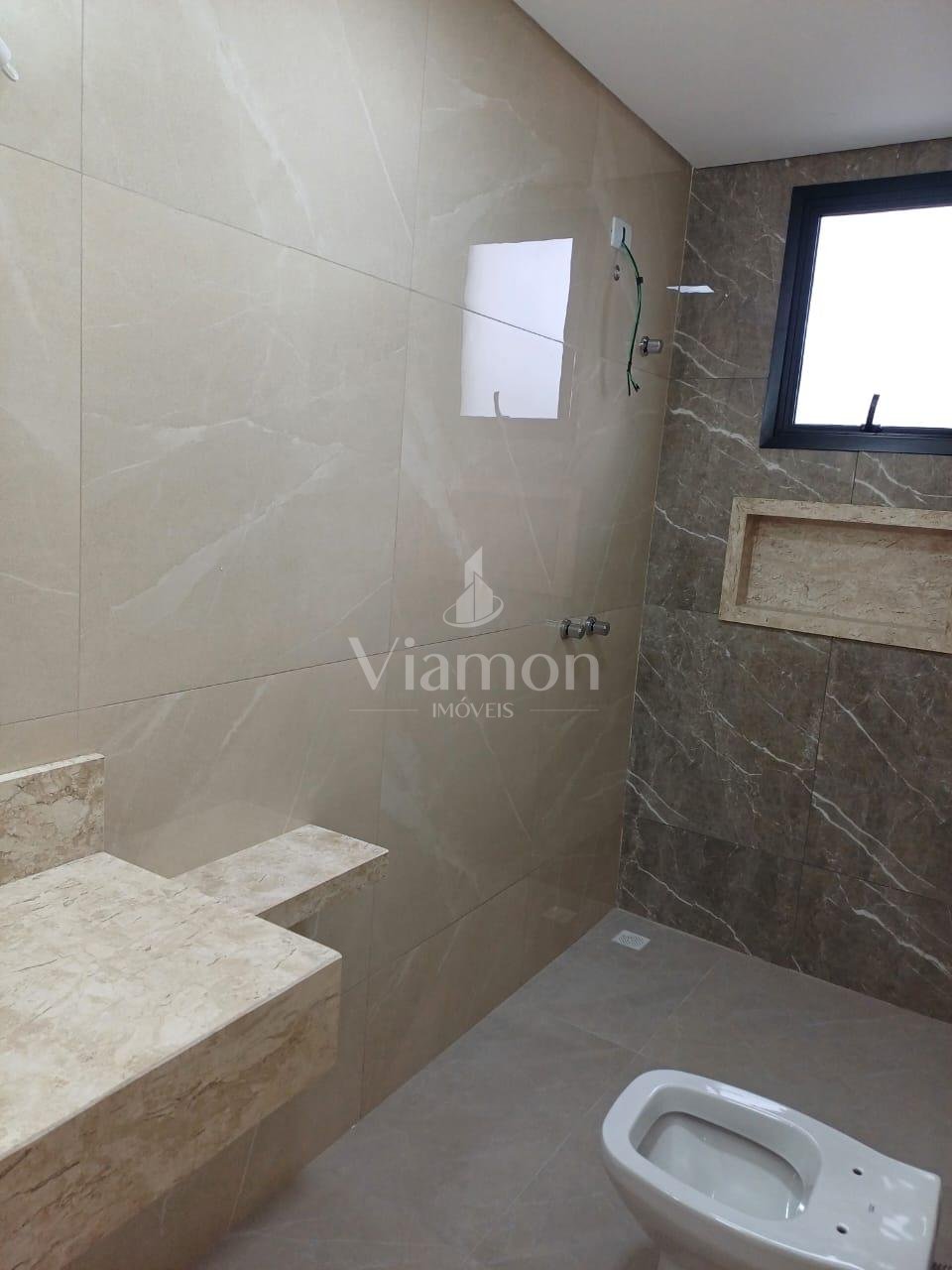 - 3 banheiros completos com acabamentos de alto padrão, box em vidro verde e bancadas em granito