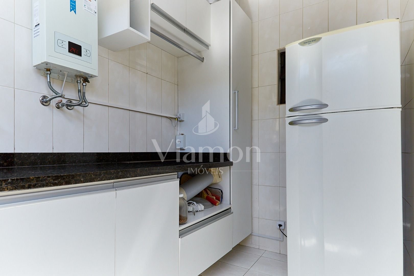 Aquecimento a gás em todas as torneiras e chuveiros.