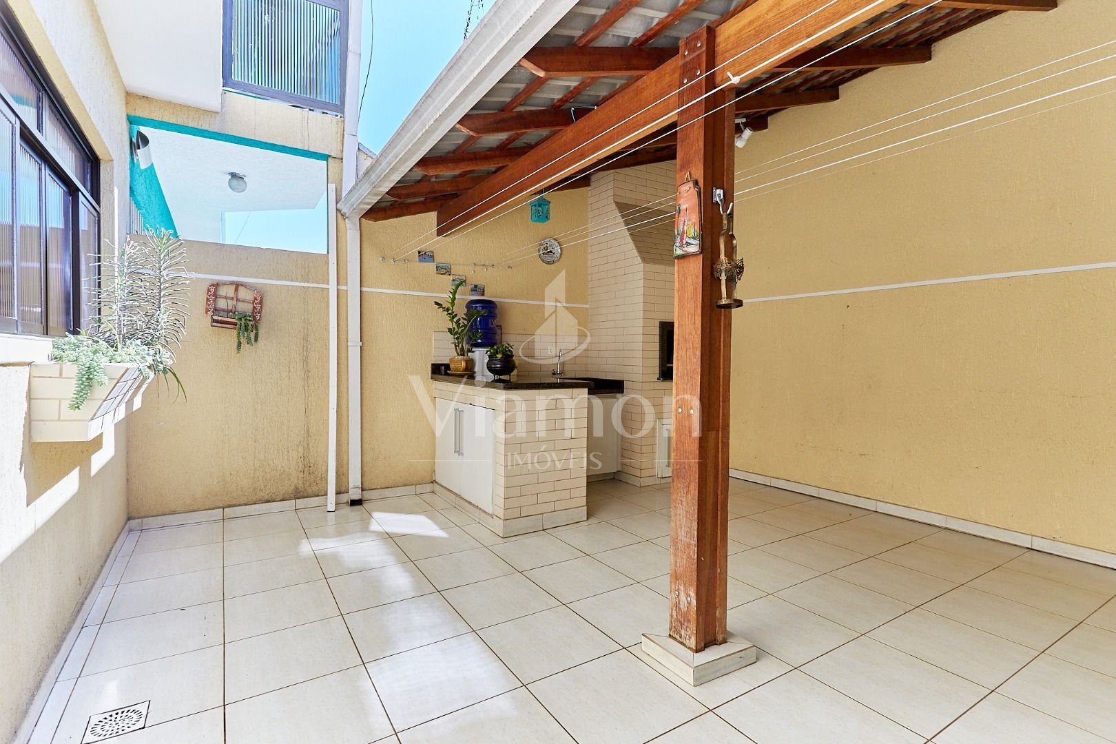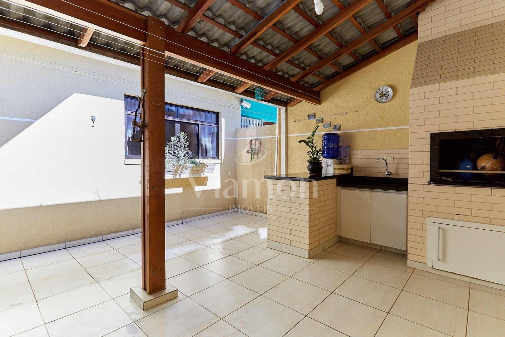 Área nos fundos de +/-27 m², parcialmente coberta, com churrasqueira, sol da tarde e ventilação natural, perfeita para um espaço gourmet.