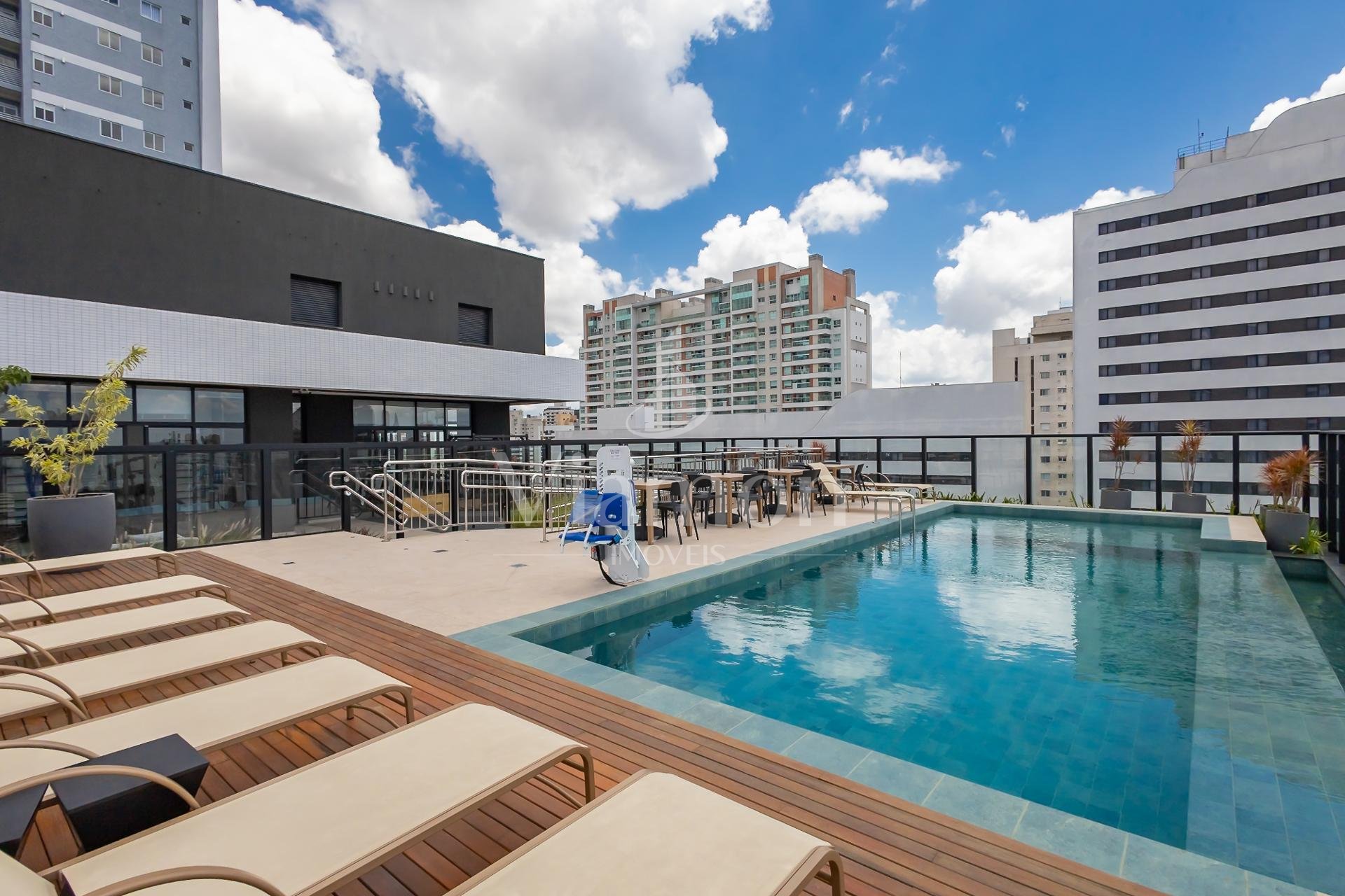 Studio All Batel, com 34m2, com lazer completo, vista incrível, piscina aquecida e estilo moderno.