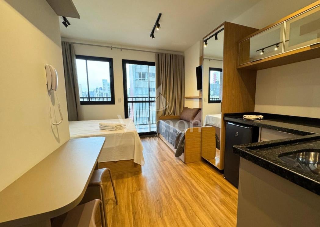 Studio Mobiliado com Sacada e Vaga de Garagem no Ibiza Unique Home - Centro de Curitiba. Excelente opção para investimento em locação por temporada ou para quem busca um espaço moderno e otimizado no coração de Curitiba. Este studio combina funcionalidade, localização estratégica e o diferencial de incluir 1 vaga de garagem descoberta, um atrativo importante na região central. Com uma área privativa de 25,18 m², a unidade está totalmente mobiliada com móveis planejados de alto padrão e decoração contemporânea. O espaço conta com sacada, cozinha equipada, cama, armário, bancada de trabalho e ar-condicionado instalado, beneficiando-se ainda de excelente iluminação natural. O Condomínio Ibiza Unique Home foi concebido para alta rentabilidade e praticidade, sendo ideal para locações de curta duração. Oferece infraestrutura completa, incluindo piscina coberta e descoberta, Espaço Gourmet, Salão de Festas, Salão de Jogos e Lavanderia compartilhada. A gestão é eficiente para plataformas como Airbnb e similares, e a segurança conta com portaria de acesso inteligente. Situado no Centro de Curitiba, o imóvel garante acesso rápido a transporte público, universidades, hospitais, comércio e pontos turísticos, sendo perfeito para investidores, estudantes, profissionais e turistas. Agende sua visita para comprovar o potencial de rentabilidade e moradia deste studio.