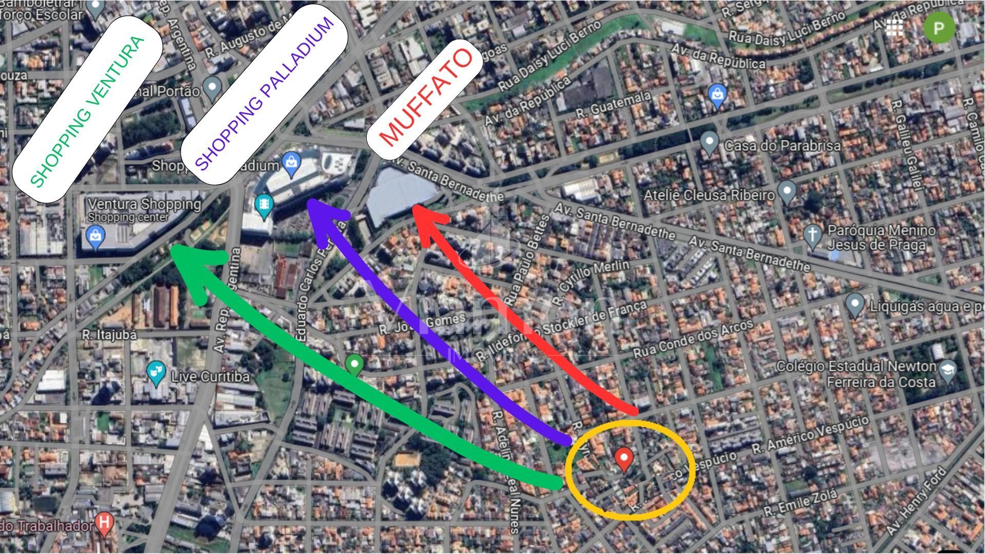 Apenas 900 metros em linha reta do Shopping Palladium e do Supermercado Muffato, oferecendo conveniência para moradores e clientes