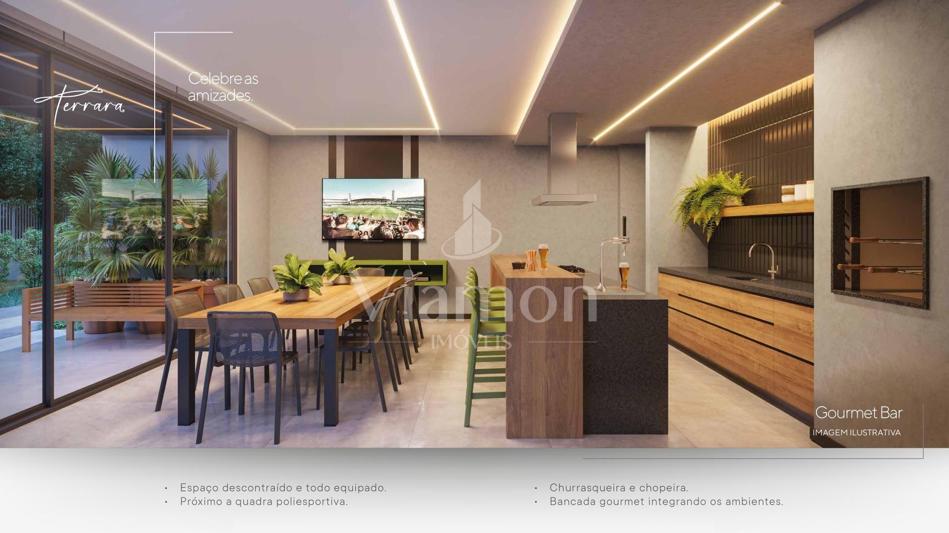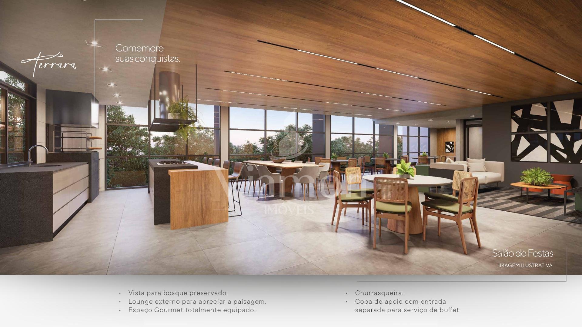 Condomínio com portaria 24 horas, estacionamento para visitantes, academia totalmente equipada, salão de festas com vista para o bosque, gourmet bar com chopeira, salão de jogos, brinquedoteca, playground ao ar livre, quadra poliesportiva iluminada, spa completo com piscina aquecida e sauna úmida, bosque preservado com trilhas, rede elétrica subterrânea e área de apoio com depósito para delivery.